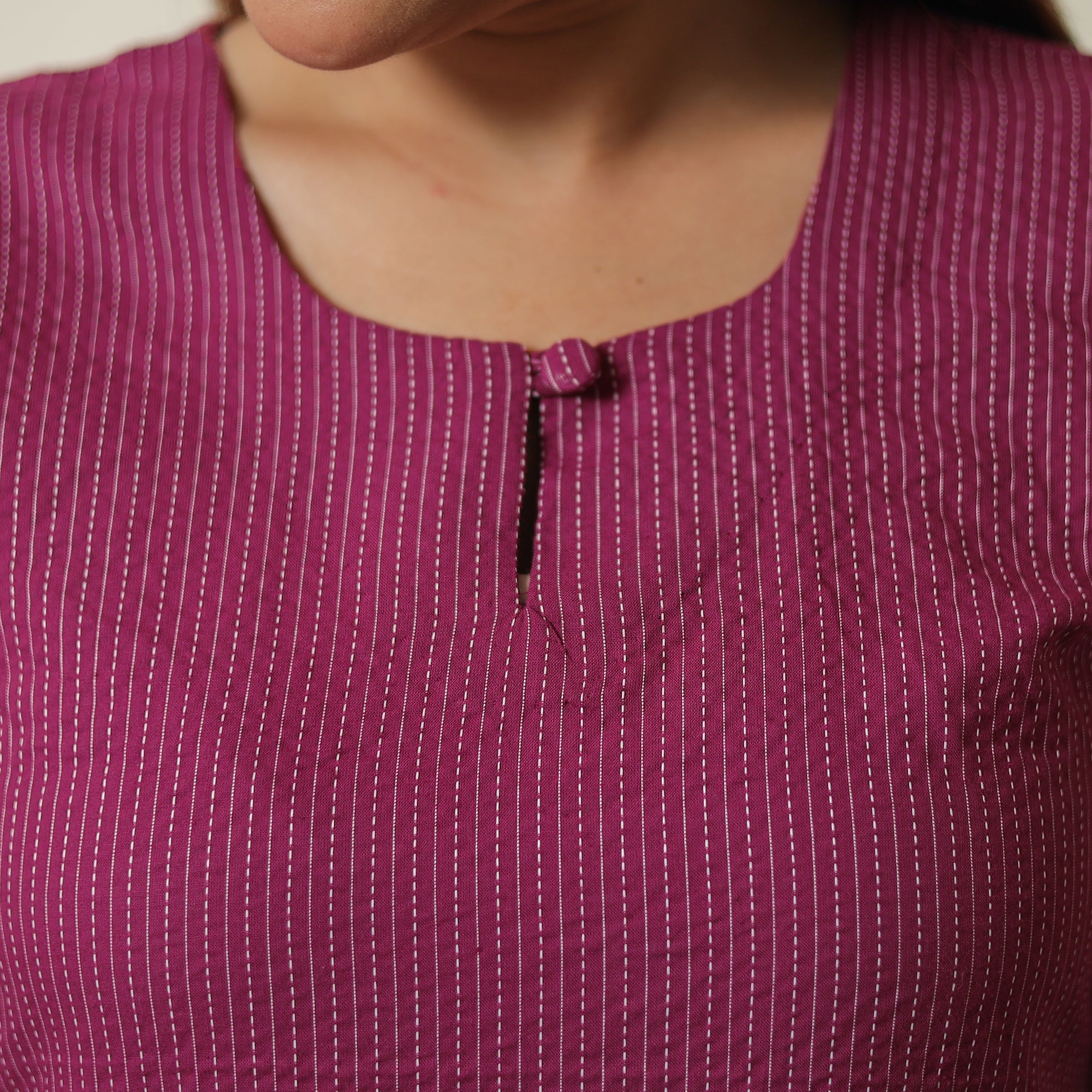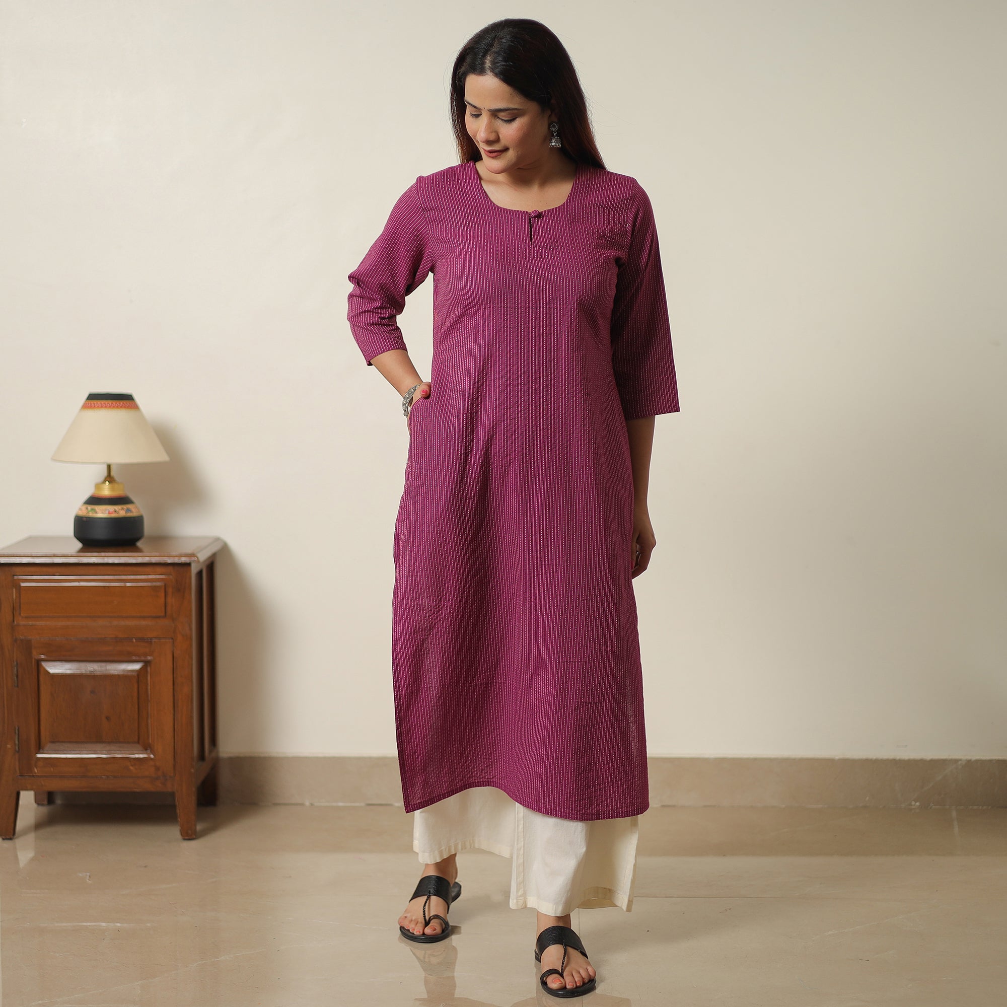 Fine quality running stitch plain pure cotton long kurta with side pocket .