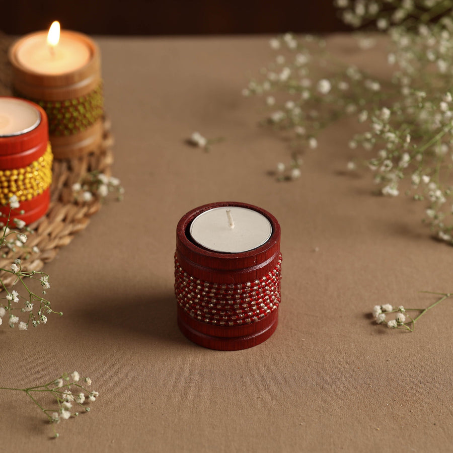 Handcrafted bead work tealight candle holder made from natural bamboo.