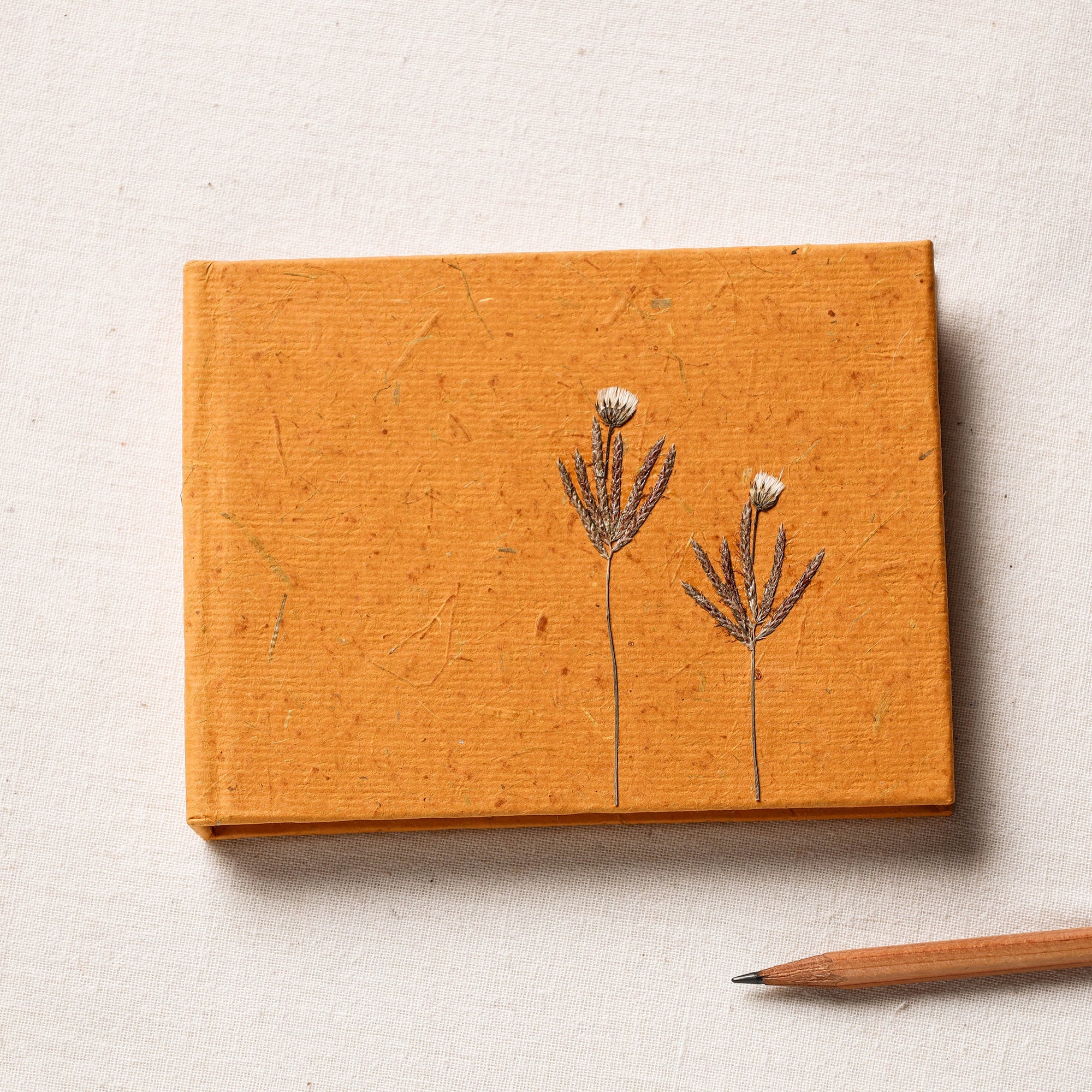 | Material | Let your imaginations flow. This flower art work handmade notebook is the perfect accessory to record your thoughts and doodles. It's hard bound cover is handmade from recycled cotton and individually handcrafted at Shradhanjali. The flower design represents the radiant joy, beauty of nature and symbolic of its aspiration towards the light. Shradhanjali captures and preserves the unique quality of each flower, grass or leaf in their intricately worked pressed flower range. |