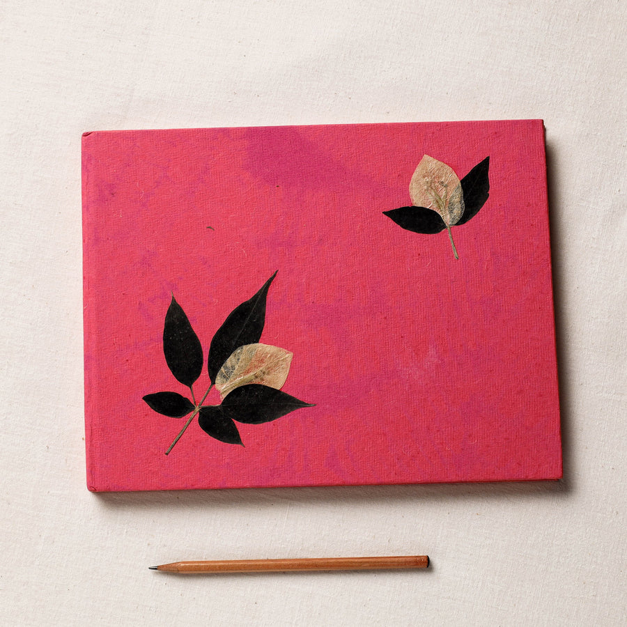 | Material | Let your imaginations flow. This flower art work handmade notebook is the perfect accessory to record your thoughts and doodles. It's hard bound cover is handmade from recycled cotton and individually handcrafted at Shradhanjali. The flower design represents the radiant joy, beauty of nature and symbolic of its aspiration towards the light. Shradhanjali captures and preserves the unique quality of each flower, grass or leaf in their intricately worked pressed flower range. |