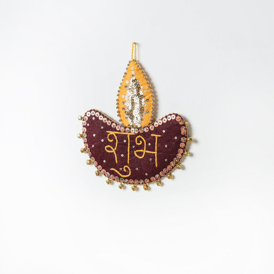 | Material | Hand embroidered ghungroo & beadwork hanging. This handmade hanging will be spectacular as Diwali decor to be placed anywhere in the house. It's contrast coloring accentuates the beauty of your home. |