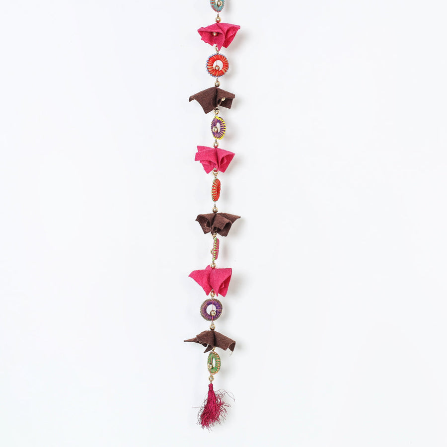 | Material | Handmade felt & beadwork wall hanging. This handmade hanging will be spectacular as Diwali decor to be placed anywhere in the house. It's contrast coloring accentuates the beauty of your home. |