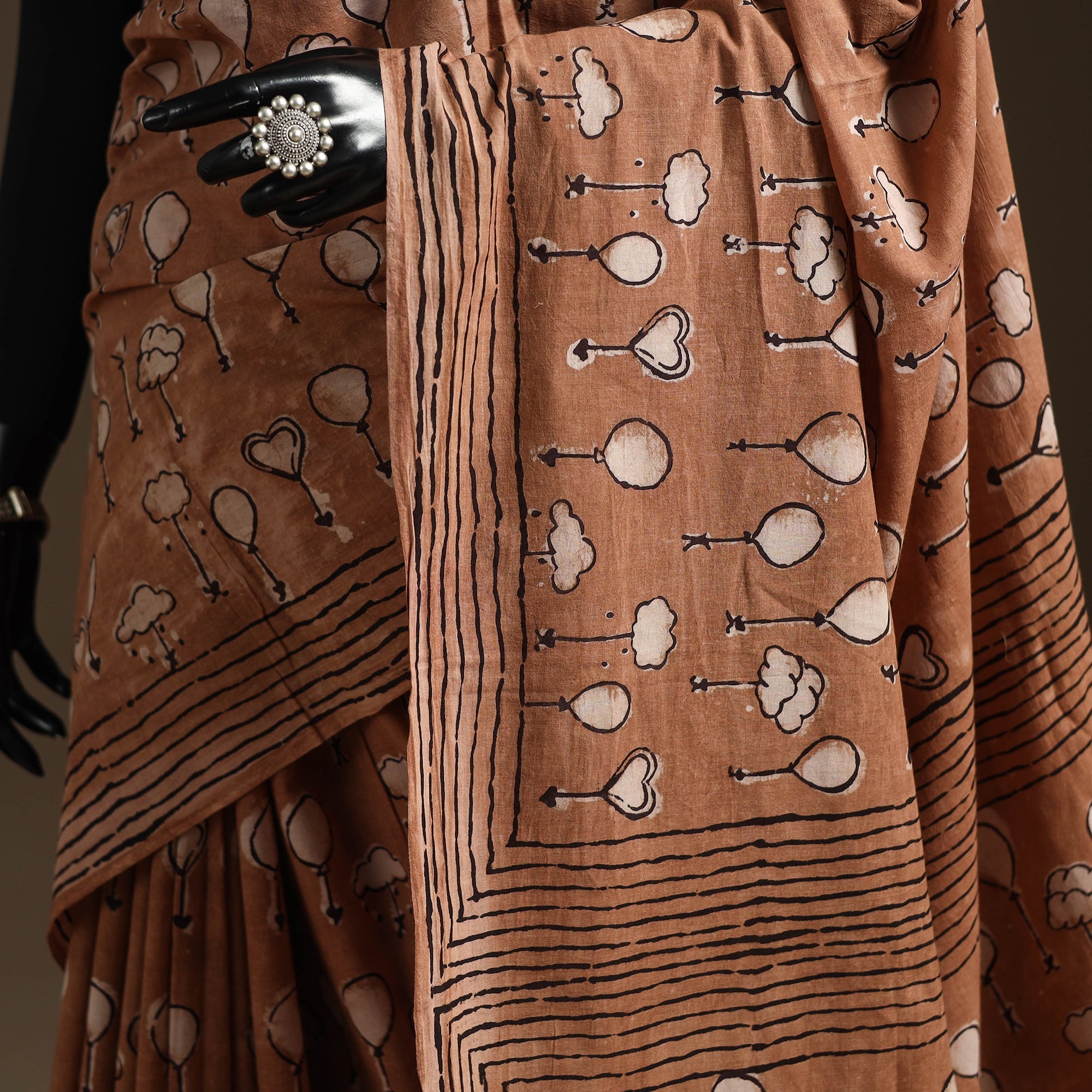 Elevate your style with our fine quality brown pure cotton natural dyed special art block printed saree. Skillfully crafted by fourth generation textile printers in Rajasthan, this hand block printed saree combines contemporary designs with traditional processes. Embrace the beauty of slow fashion and the rich heritage of traditional skills with this exquisite cotton saree.