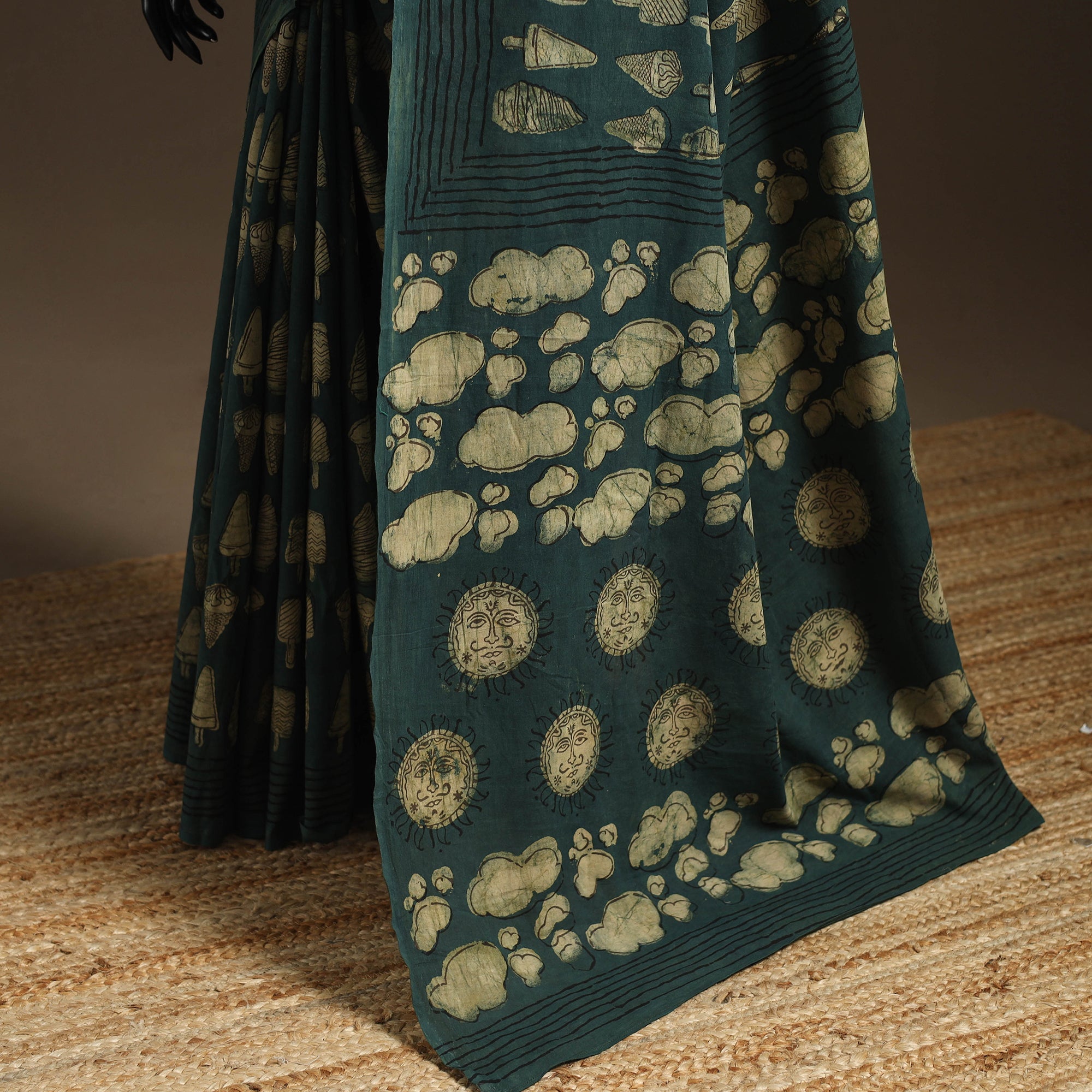 Elevate your style with our fine quality green pure cotton natural dyed special art block printed saree. Skillfully crafted by fourth generation textile printers in Rajasthan, this hand block printed saree combines contemporary designs with traditional processes. Embrace the beauty of slow fashion and the rich heritage of traditional skills with this exquisite cotton saree.