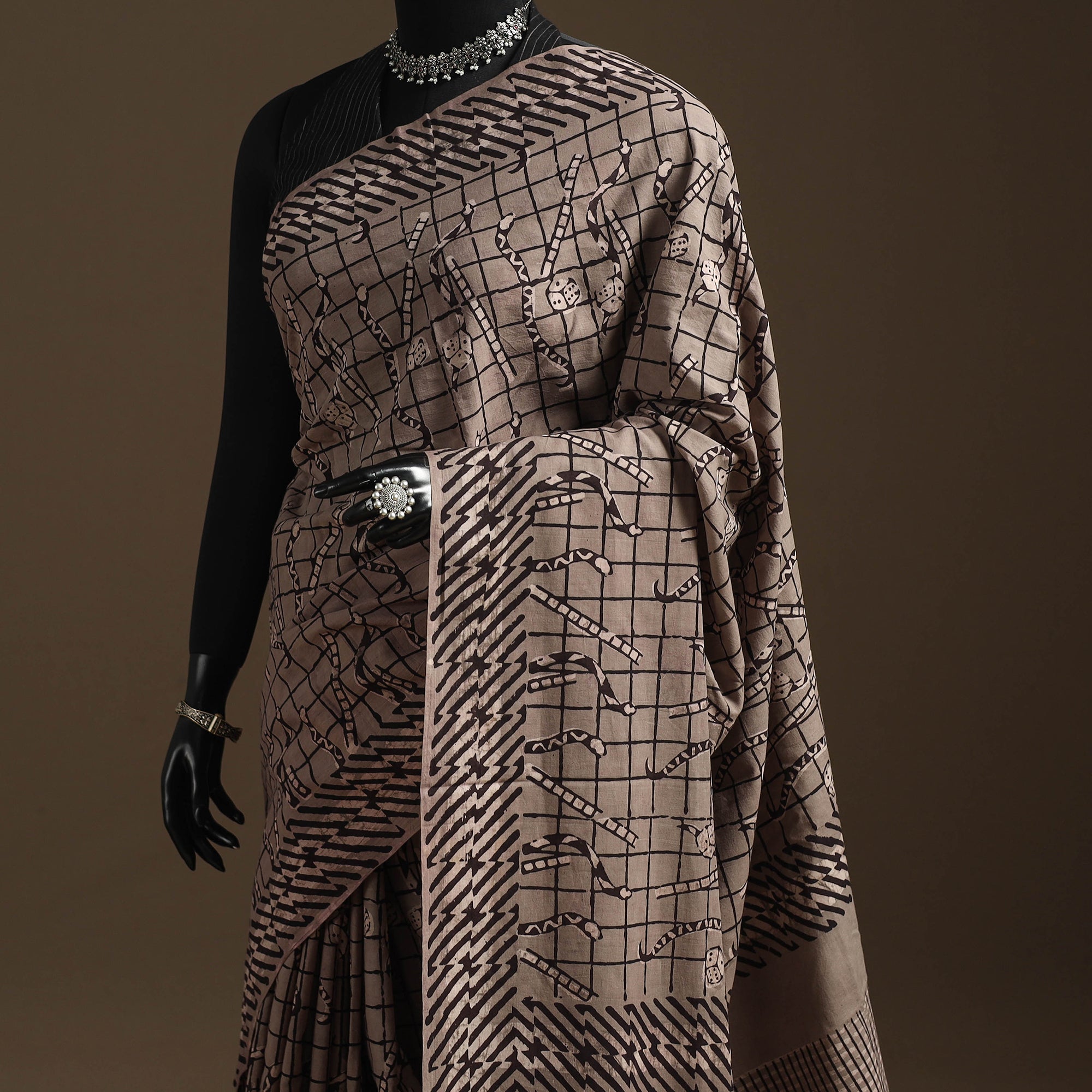 Elevate your style with our fine quality grey pure cotton natural dyed special art block printed saree. Skillfully crafted by fourth generation textile printers in Rajasthan, this hand block printed saree combines contemporary designs with traditional processes. Embrace the beauty of slow fashion and the rich heritage of traditional skills with this exquisite cotton saree.