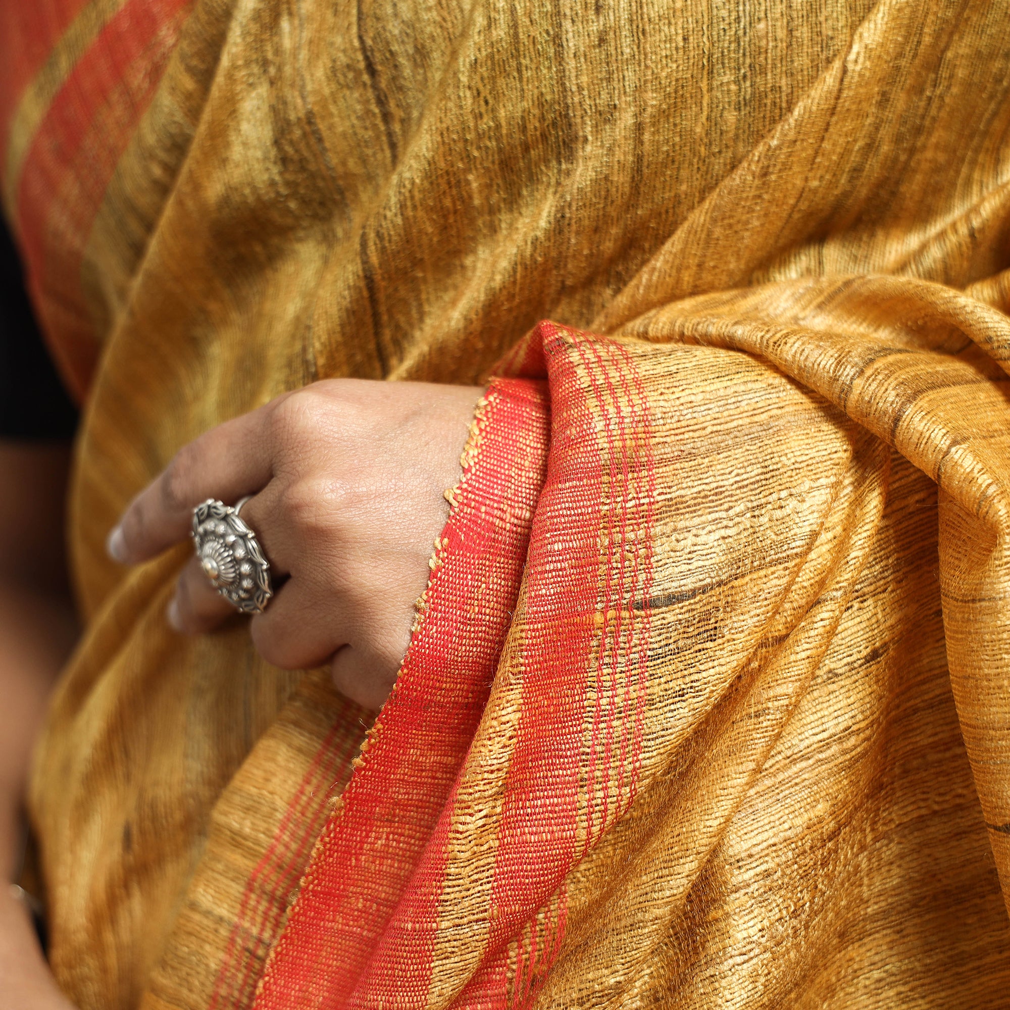 Finest pure and handwoven desi ghicha silk saree from Bhagalpur, Bihar. Exquisite tussar silk saree with beautiful handwoven textures.