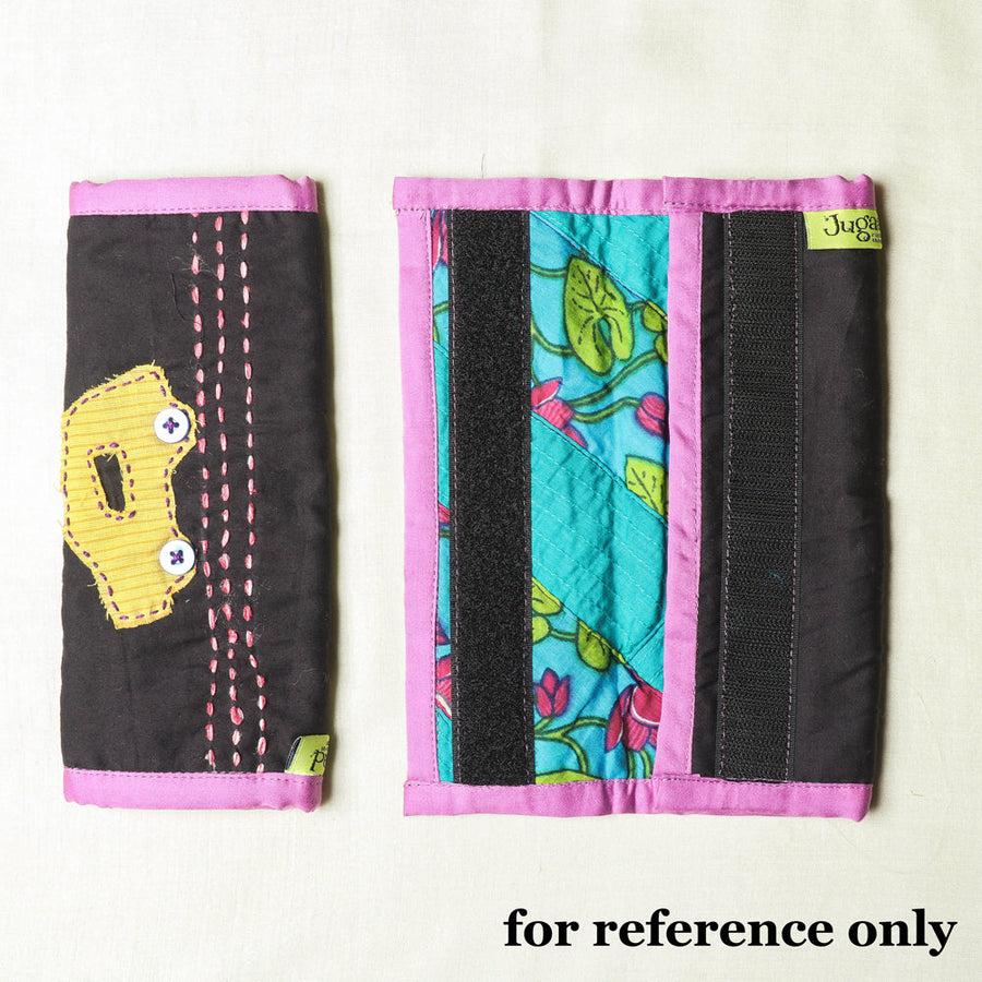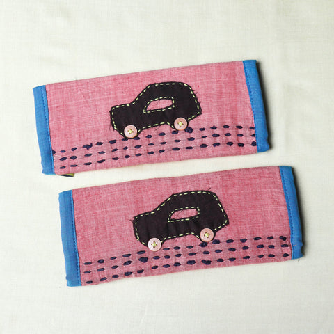 Fine quality pink cotton fridge handle / seat belt cover textured with handmade textiles of India.