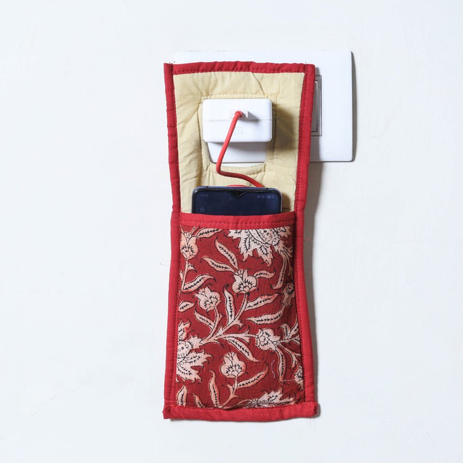 Red Handmade mobile charging holder made up with cotton fabric. Premium quality fabric is used to make it soft & comfy. It's quite handy & portable while traveling. It keeps your phone safe and protected. It's very convenient during charging your mobile phone. It comes in different colors. It fits with your mobile & enhances the beauty & styling of your mobile phone.