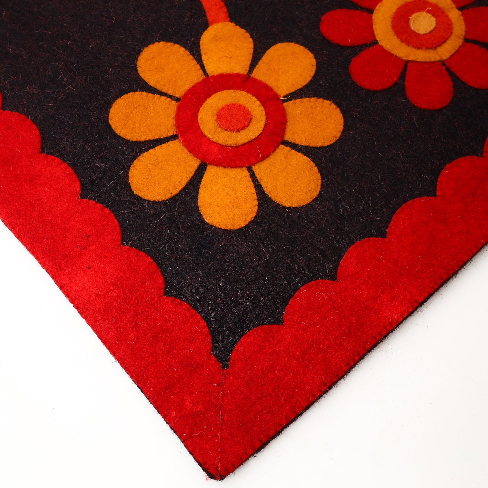 Hand felted pure wool namda floor mat made from original wool. This mat is handmade using Namda process, a rare and unique craft originating in the Mughal era, wherein splendid floor pieces are made from 100% wool (white or dyed) by practice of felting the wool rather than weaving it. This art is quite popular in Jammu & Kashmir, Himachal Pradesh and Rajasthan. Namda is made by felting of wool rather than weaving it. Wool is spread evenly in a thick layer on a grass mat or jute mat and sprinkled generously with soap water. The mat is then rolled tightly and tied up with a rope and compressed by way of rolling to-and-fro on the floor with the help of hands and feet for about an hour which allows fusing together of the fibre technically known as 'fibre to fibre' fusion. The rope is then untied, and the mat unrolled to discover the well-shaped Namda.