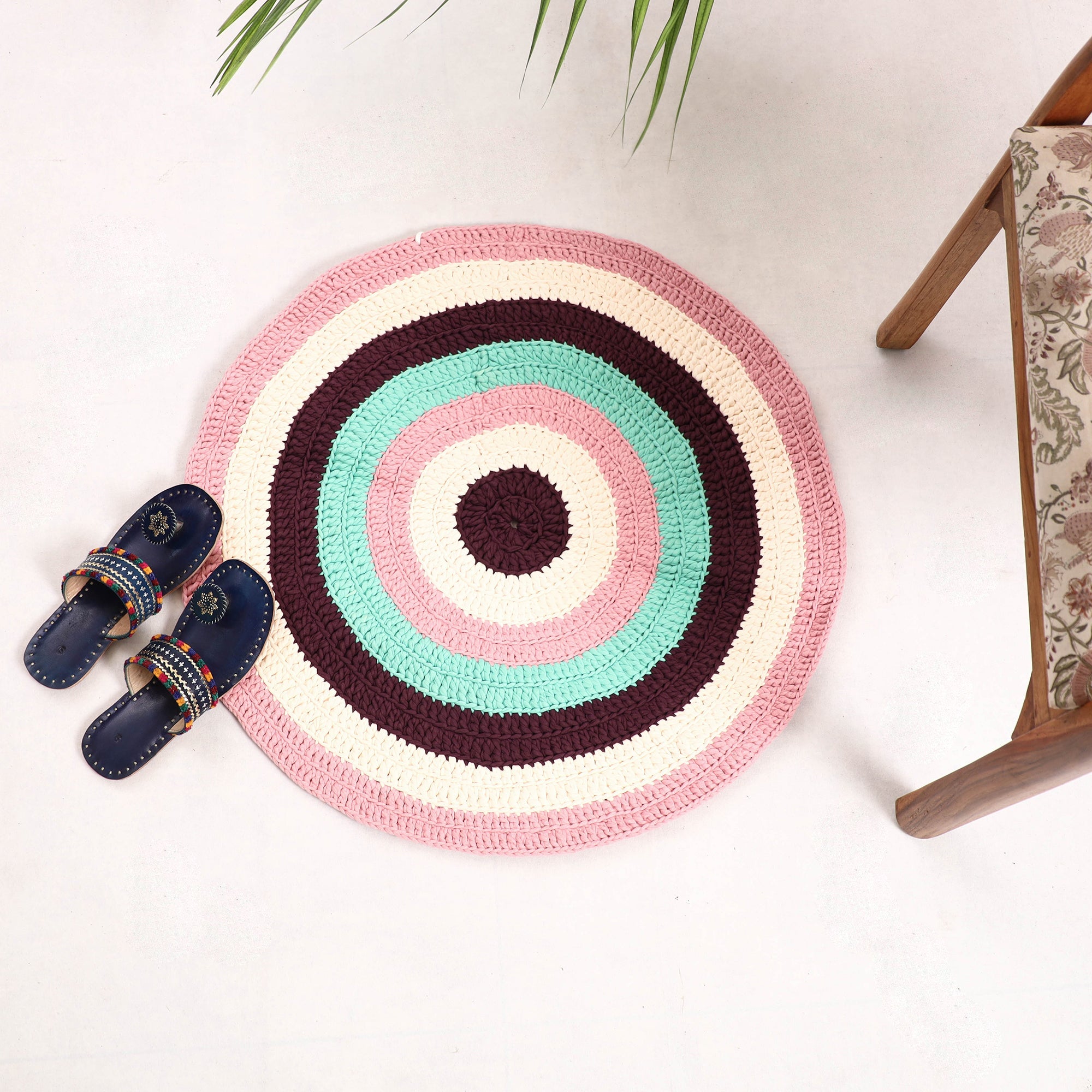 Crochet Work Upcycled Cotton Carpet / Rug (28 x 28 in)