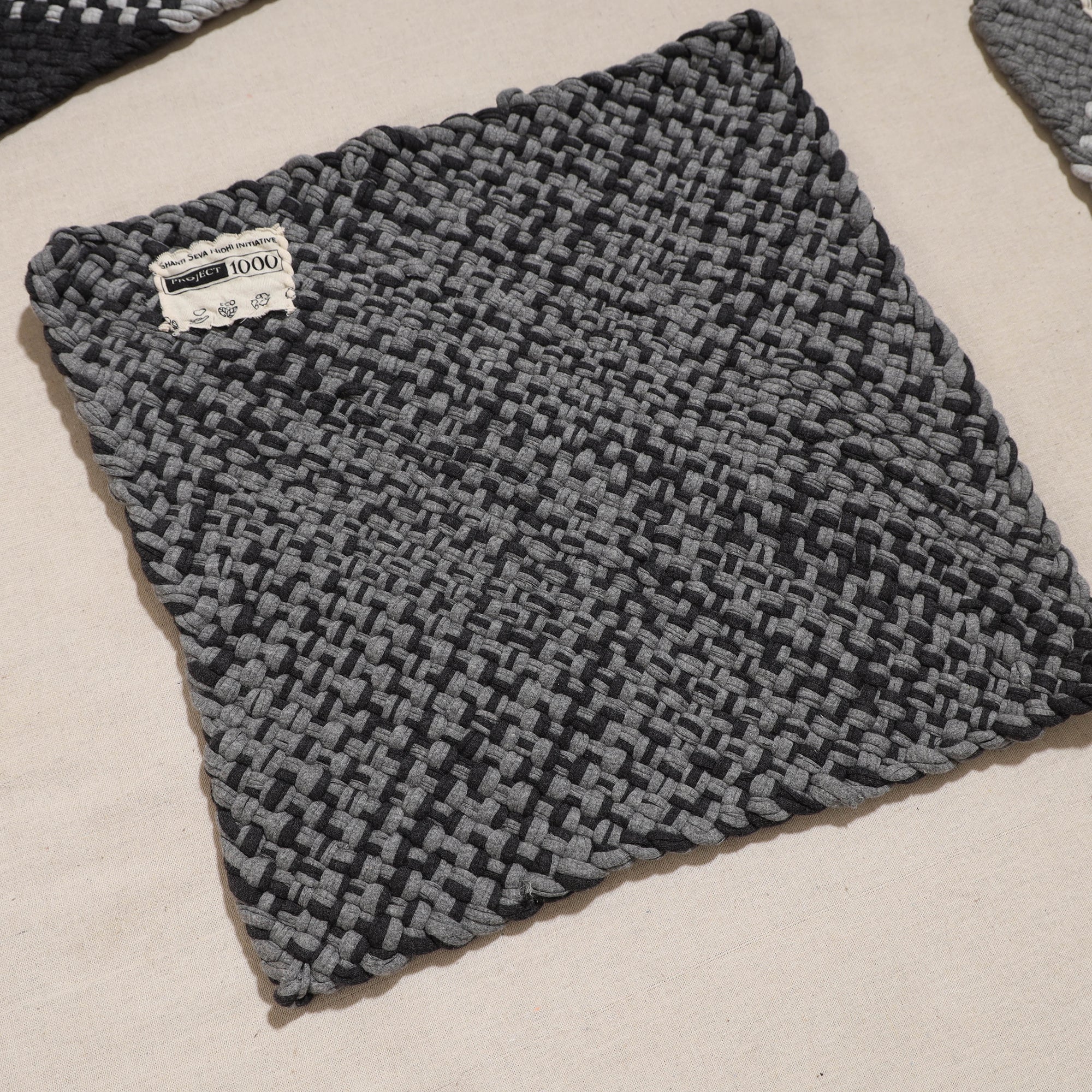 Fine quality grey handwoven upcycled cotton square placemat. Adding cheer to the dining experience!! This set of 4 dining mats make for a trendy table decor setting. These great place mats are for a sit down arrangement or a buffet setting. A great option to use as tray liners, Tea/Coffee settings, under planters, side table placements, under water jugs & much more.Handwoven on wooden frames using upcycled 100% cotton hosiery yarn inline with environment protection policy.