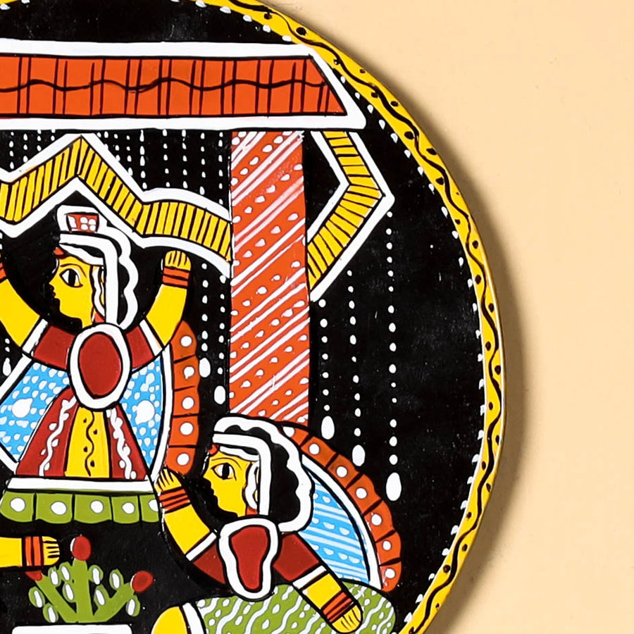 | Material | Beautifully handcrafted wall hanging/trivets, made of MDF wood with tikuli hand painted miniature painting that depicts a regular day in the life of village women. (oil colours used) Tikuli is an uncommon and one of a kind bit of hand painting, over 800 years of age and has its origins in Bihar, Eastern India. The “tika” or dot on the woman’s forehead is believed to be the inspiration behind this art-form. It is done on hard-board using deft paintbrush strokes, enamel and bold colors, usually against a dark, black background for great effect. The process renders the board heatproof and waterproof. Fabulous products such as trays, coaster, jewelry and wall-hangings are increasingly popular. |