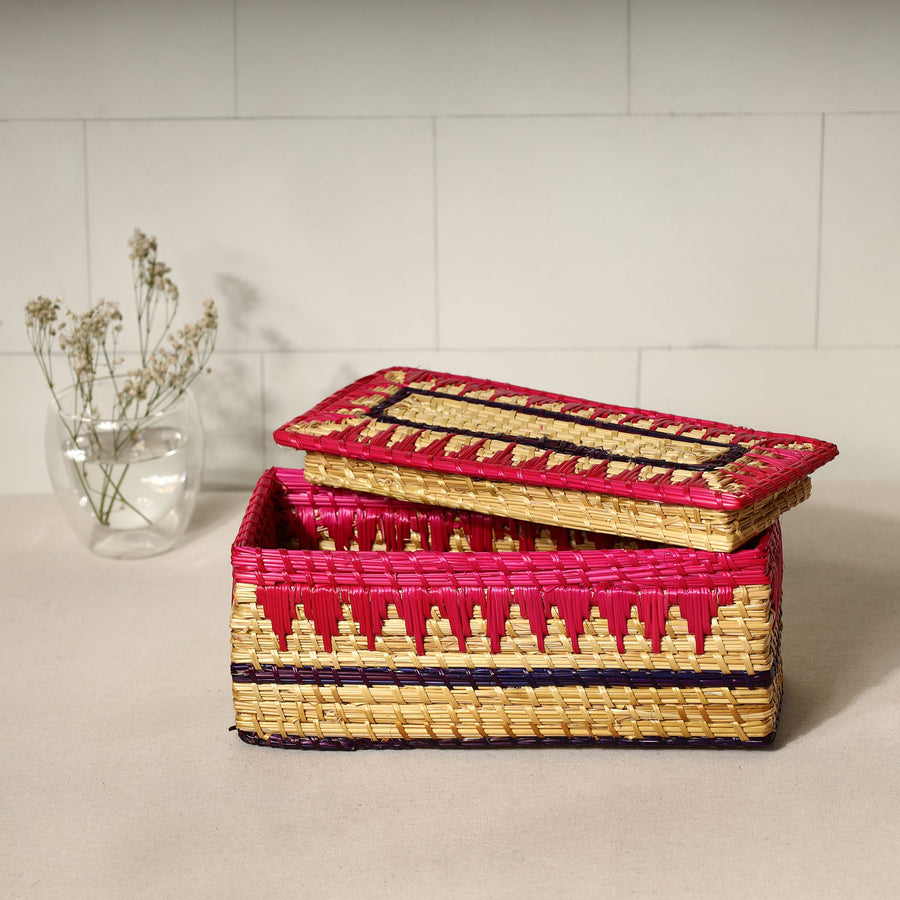 Handcrafted sikki grass weaved pink multipurpose utility box, made with natural sikki grass.