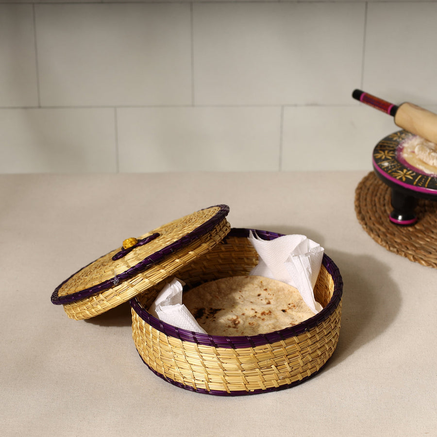 Handcrafted beige sikki grass weaved roti box, made with natural sikki grass.