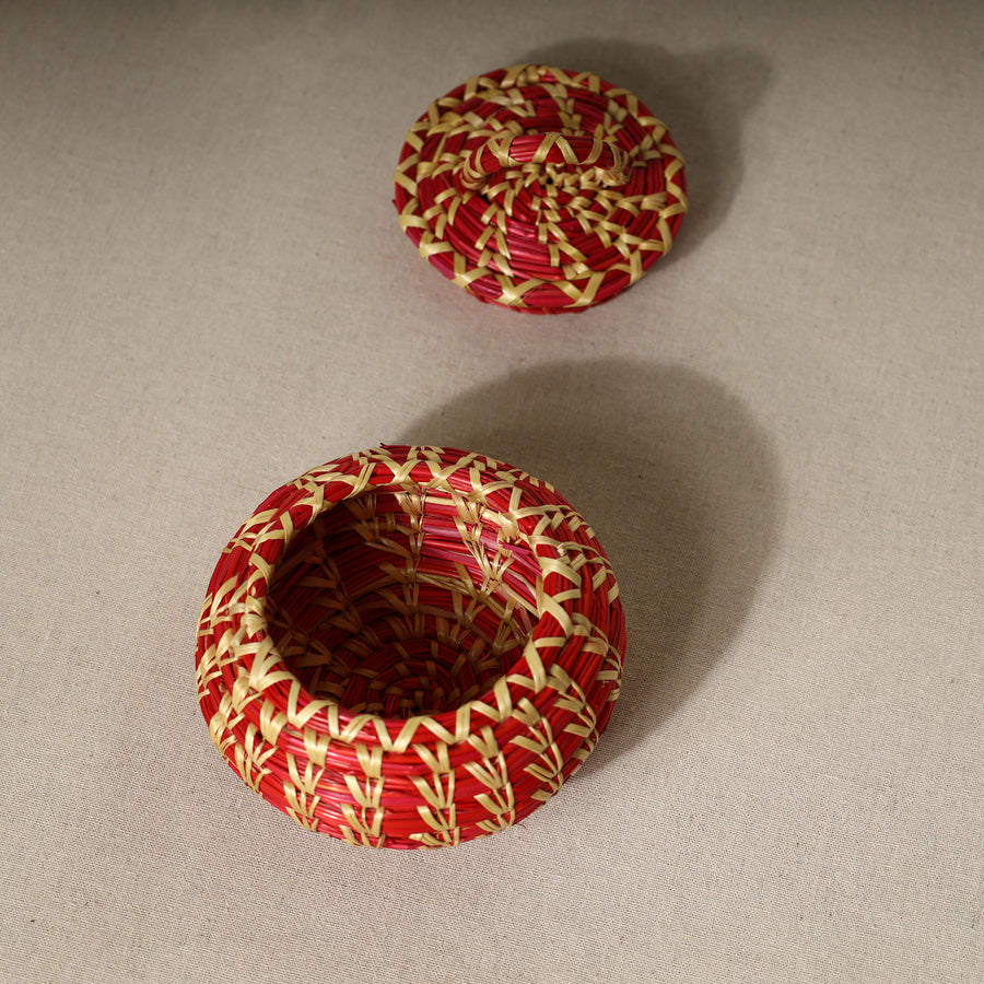 Handcrafted sikki grass weaved red multipurpose utility box, made with natural sikki grass.
