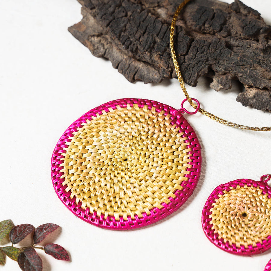 Red - Hand Braided Natural Sikki Grass Necklace