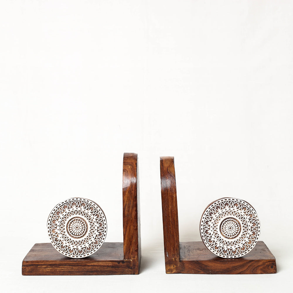 Intricately carved natural sheesham wood bookend. This unique bookend has been handcrafted in sheesham wood. Use these bookends for keeping your bookshelves neat and tidy, as statement decor pieces, to organise magazines and even DVD's. Design and utility both lie at the core of this piece and it's natural finish makes it completely adaptable to any surroundings. Place as a decor accessory in your living room or office shelf. This exquisite piece will elevate the beauty wherever it will be kept.