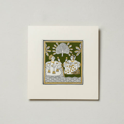 This handpainted original work of phad painting is done on handmade paper base with natural pigment colours. A 700-year-old legacy passed down over generations within a single family, Phad finds its origins in Shahpura, near Bhilwara, Rajasthan. Phad is a type of scroll painting that narrates elaborate religious stories of local deities and gods. Created as travelling or mobile temples, these traditional paintings were carried by priest-singers of the Rabari tribe, called Bhopas and Bhopis, who would sing and perform stories of their local deities. The story was always of Devnarayan or Pabuji, both folk deities. The Phad painting would be unrolled, or unfolded after sunset, and the performance in front of village members, would last into the night. This is perhaps why the paintings are called ‘Phad’, which means ‘fold’ in the local dialect. This Indian tribal art comes from Bhilwara from the family of Kalyan Joshi. A wonderful painting for the discerning decor aficionado or a gift for an art lover. These are priceless collectibles.