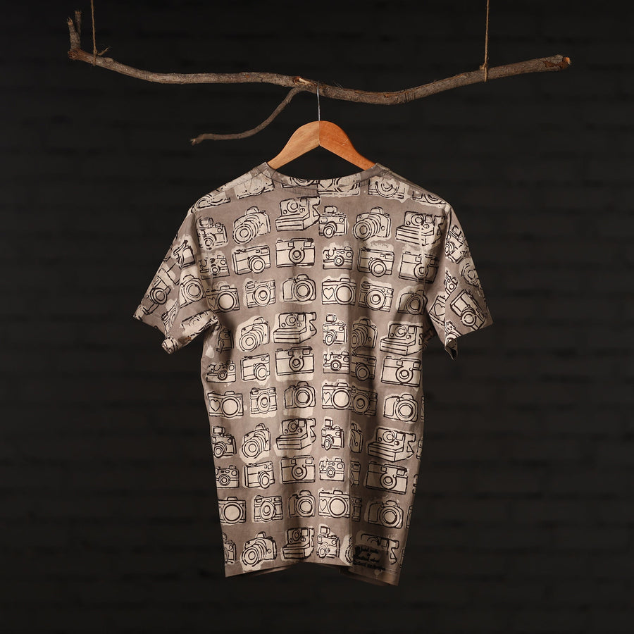 Pure cotton, natural dyed, hand block printed unisex round neck t-shirt. Contemporary designs made through traditional processes, by skilled fourth generation textile printers in Rajasthan. This slow fashion, hand block printed cotton t-shirt brings back the love for traditional skills, with a modern aesthetic and design.