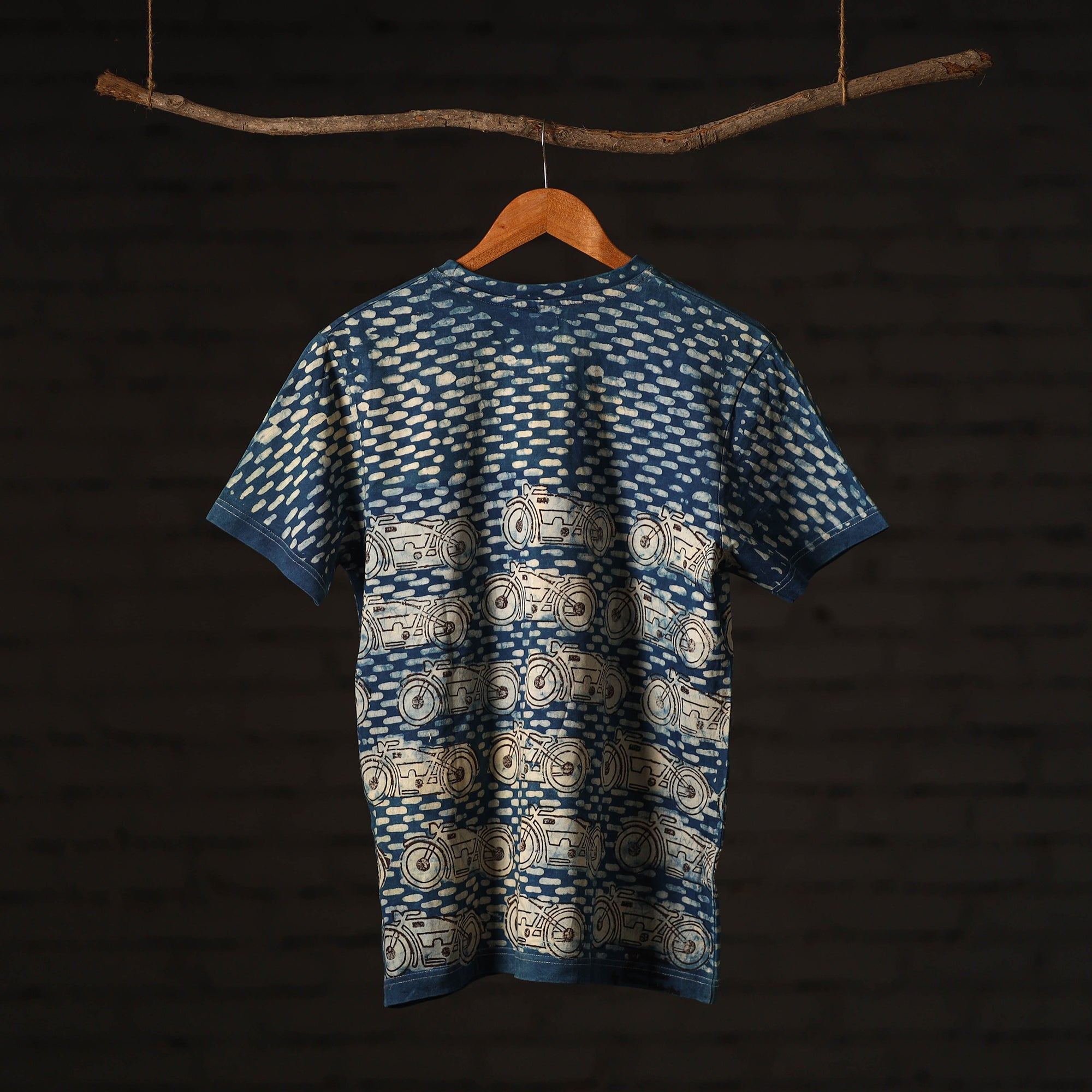 Pure cotton, natural dyed, hand block printed unisex round neck t-shirt. Contemporary designs made through traditional processes, by skilled fourth generation textile printers in Rajasthan. This slow fashion, hand block printed cotton t-shirt brings back the love for traditional skills, with a modern aesthetic and design.