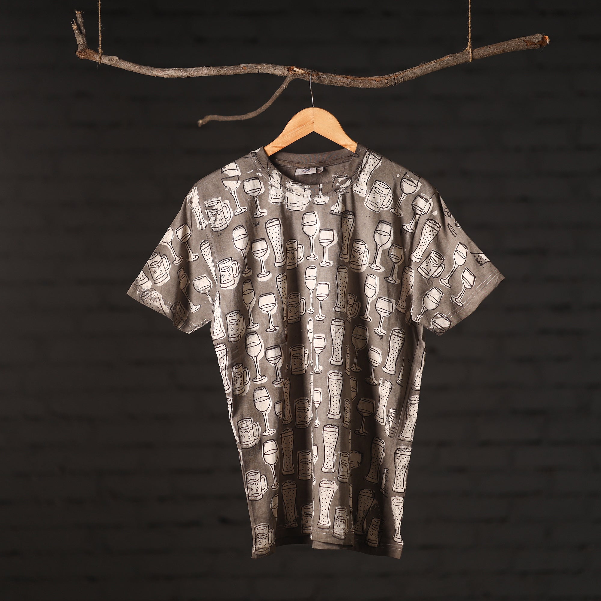 Pure cotton, natural dyed, hand block printed unisex round neck t-shirt. Contemporary designs made through traditional processes, by skilled fourth generation textile printers in Rajasthan. This slow fashion, hand block printed cotton t-shirt brings back the love for traditional skills, with a modern aesthetic and design.
