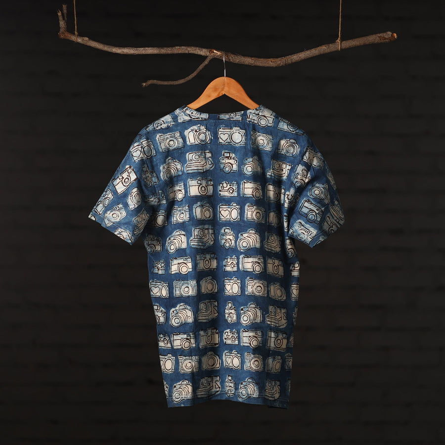 Pure cotton, natural dyed, hand block printed unisex round neck t-shirt. Contemporary designs made through traditional processes, by skilled fourth generation textile printers in Rajasthan. This slow fashion, hand block printed cotton t-shirt brings back the love for traditional skills, with a modern aesthetic and design.