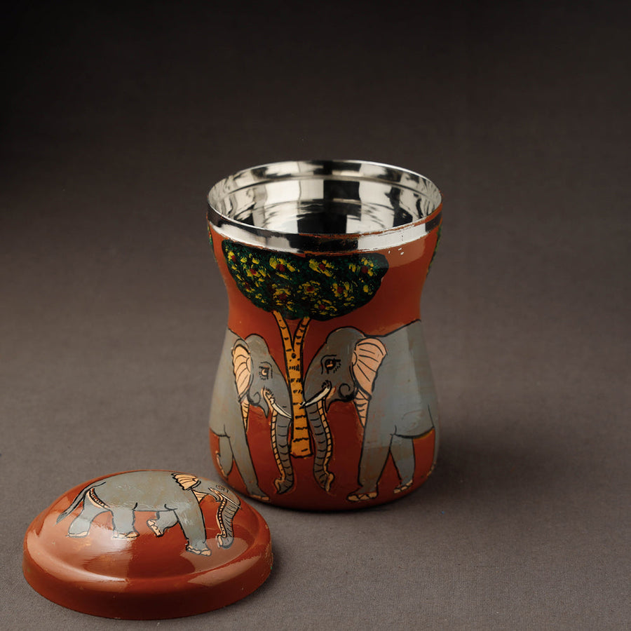 Brown kavad handpainted stainless steel multi utility canister with waterproof oil based paint on very high quality stainless steel by the artisans of Mewar Rajasthan.