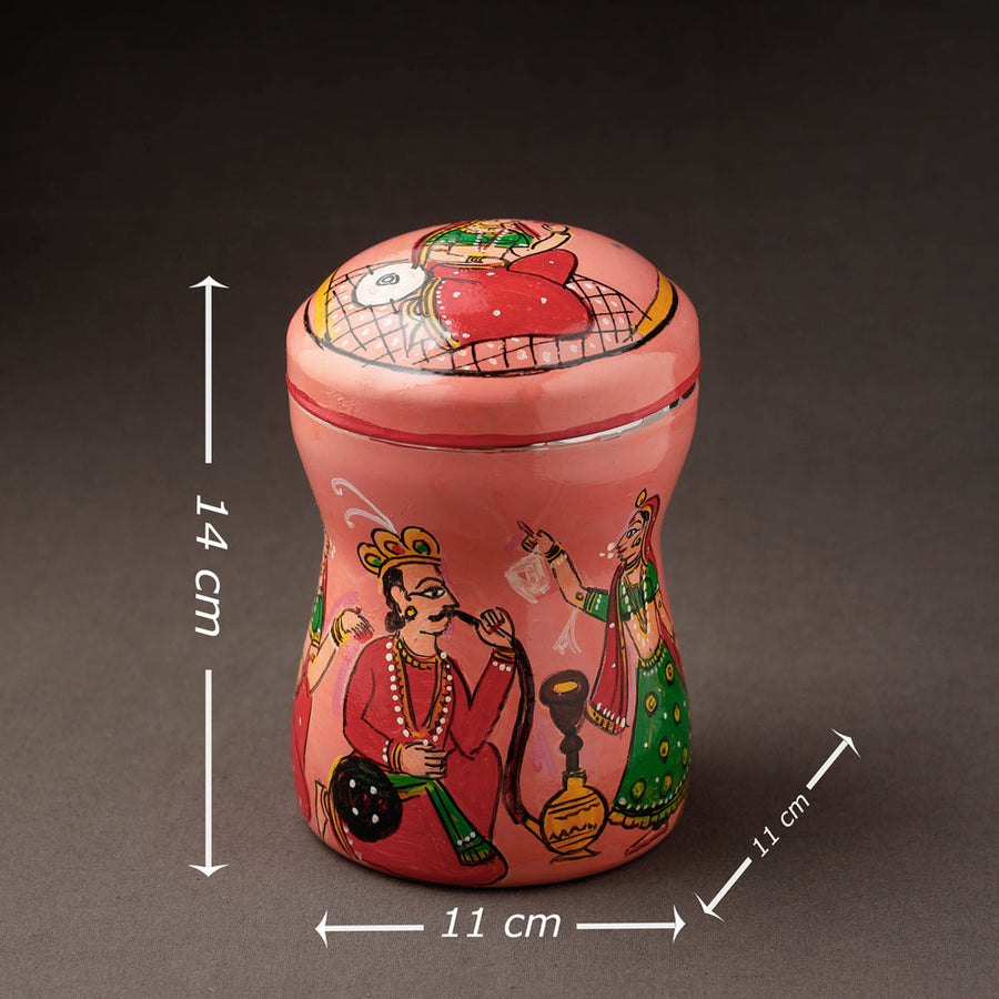 Peach kavad handpainted stainless steel multi utility canister with waterproof oil based paint on very high quality stainless steel by the artisans of Mewar Rajasthan.