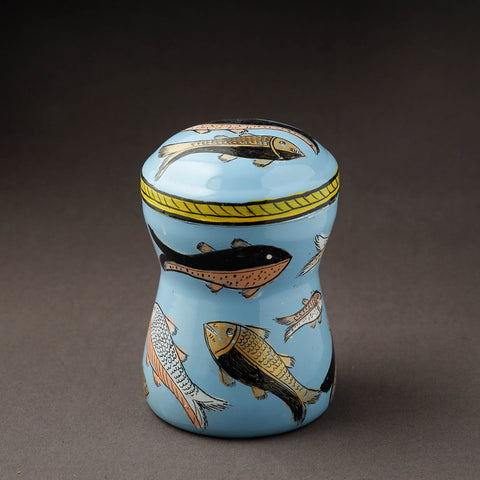 Blue kavad handpainted stainless steel multi utility canister with waterproof oil based paint on very high quality stainless steel by the artisans of Mewar Rajasthan.