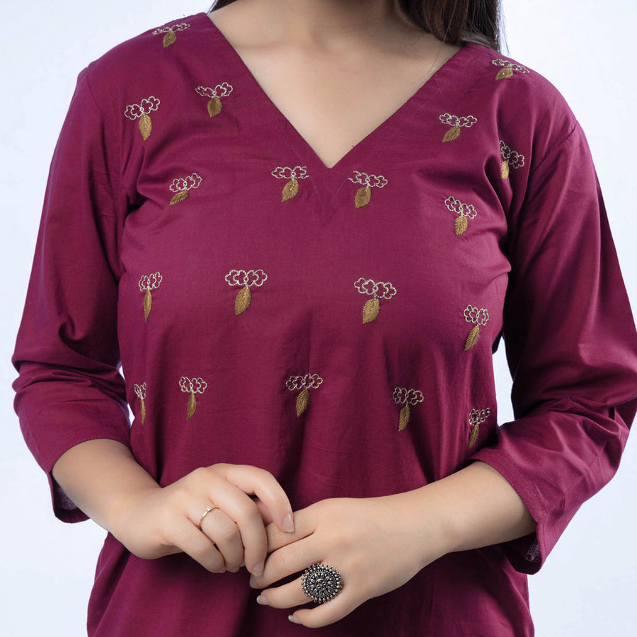 Look and feel beautiful in this uniquely designed hand embroidered plain cotton long kurta with side pocket. This cotton kurta makes you comfortable with ease all day long. This kurta is perfect for your daily outing and for a special occasion.