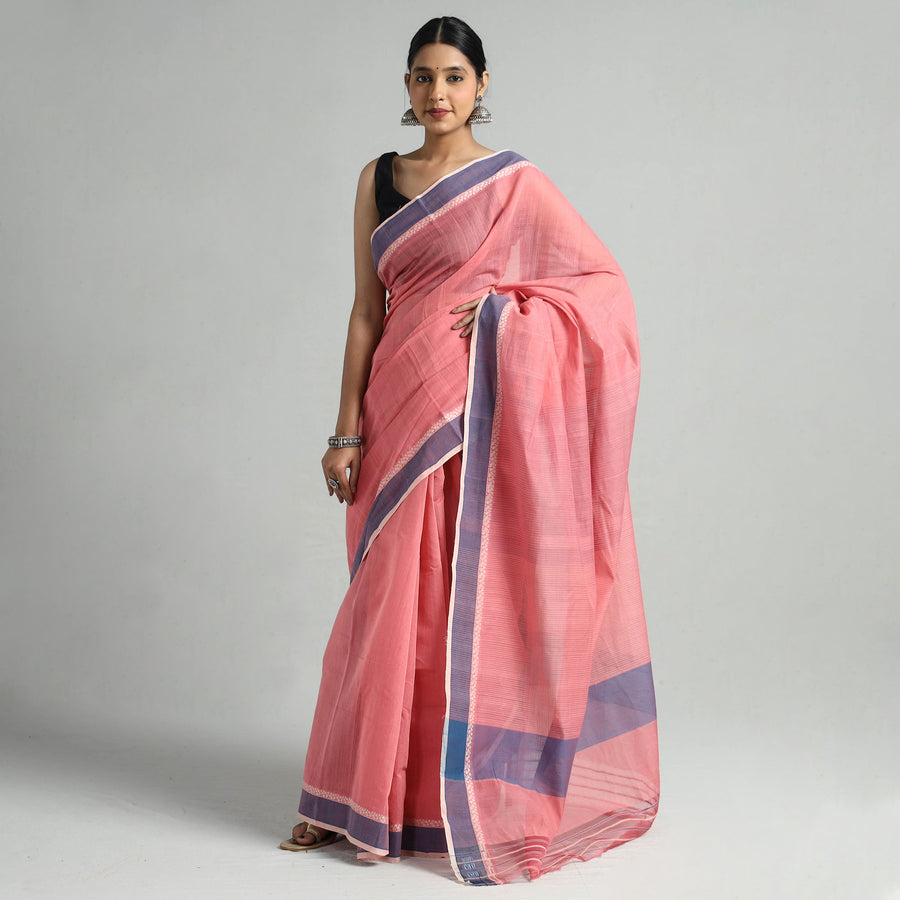 Elevate your style with the pure handloom dobby cotton saree by Chitrika. This is an ‘extra-warp’ technique where a separate set of warp threads is used to create simple and small border designs, especially on sarees, using a separate piece of equipment mounted on the loom called a dobby. The design is plotted on the dobby and is made to lift the ‘extra-warp’ threads. As the weaver weaves, the dobby shafts flip to lift the warp threads according to the pattern, and they appear on the fabric. making it a perfect choice for those who appreciate both tradition and sophistication in their attire.