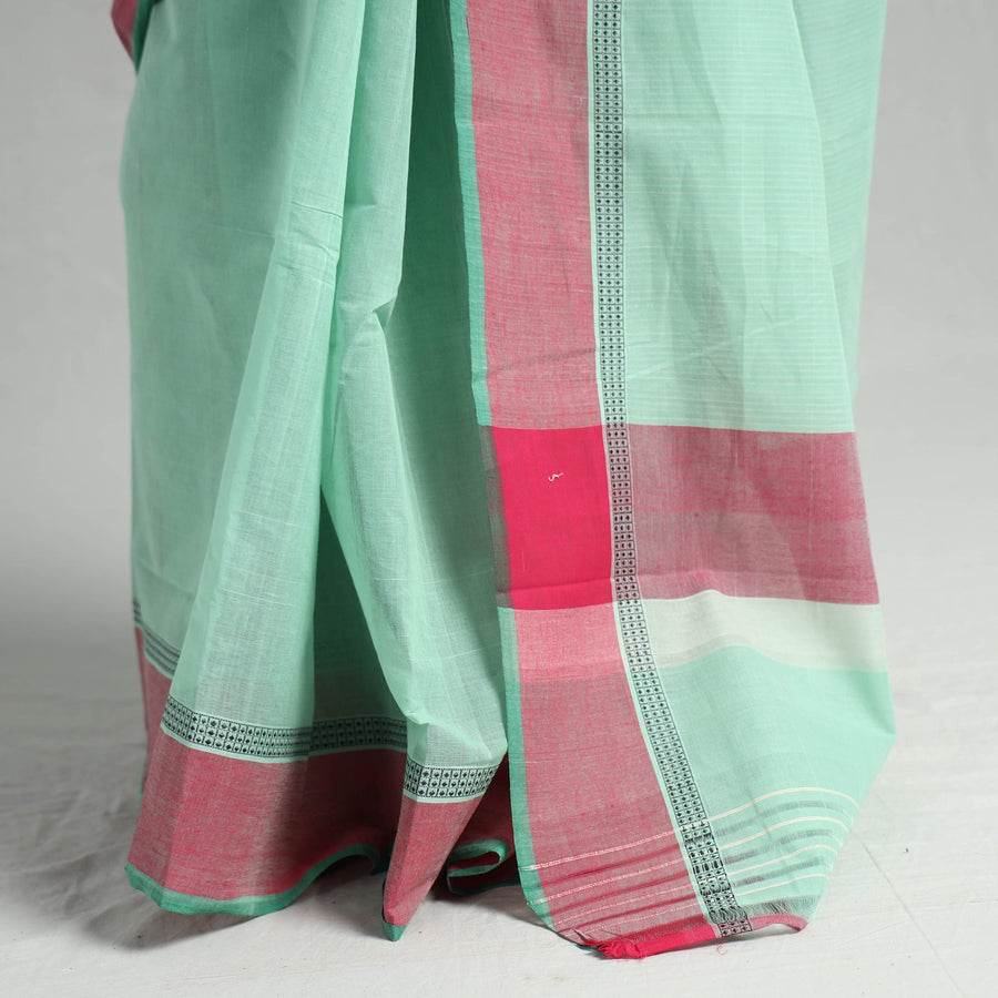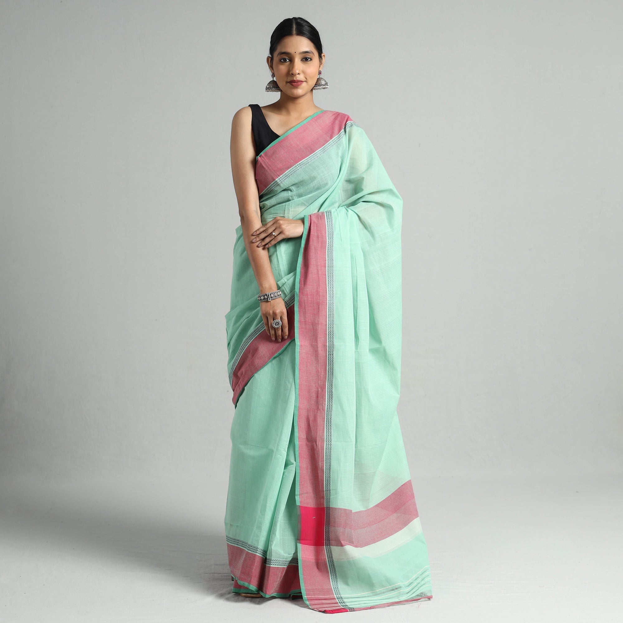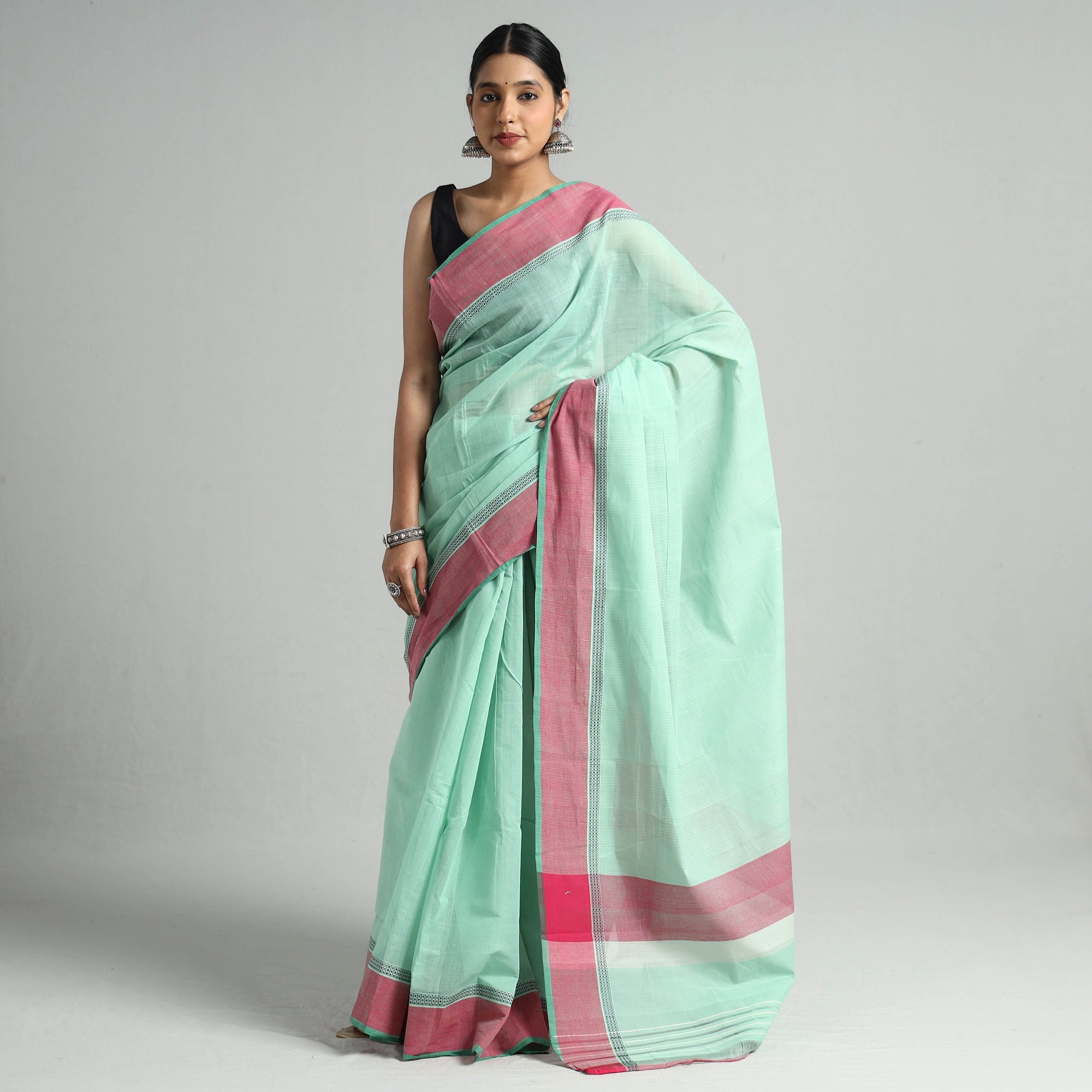Elevate your style with the pure handloom dobby cotton saree by Chitrika. This is an ‘extra-warp’ technique where a separate set of warp threads is used to create simple and small border designs, especially on sarees, using a separate piece of equipment mounted on the loom called a dobby. The design is plotted on the dobby and is made to lift the ‘extra-warp’ threads. As the weaver weaves, the dobby shafts flip to lift the warp threads according to the pattern, and they appear on the fabric. making it a perfect choice for those who appreciate both tradition and sophistication in their attire.
