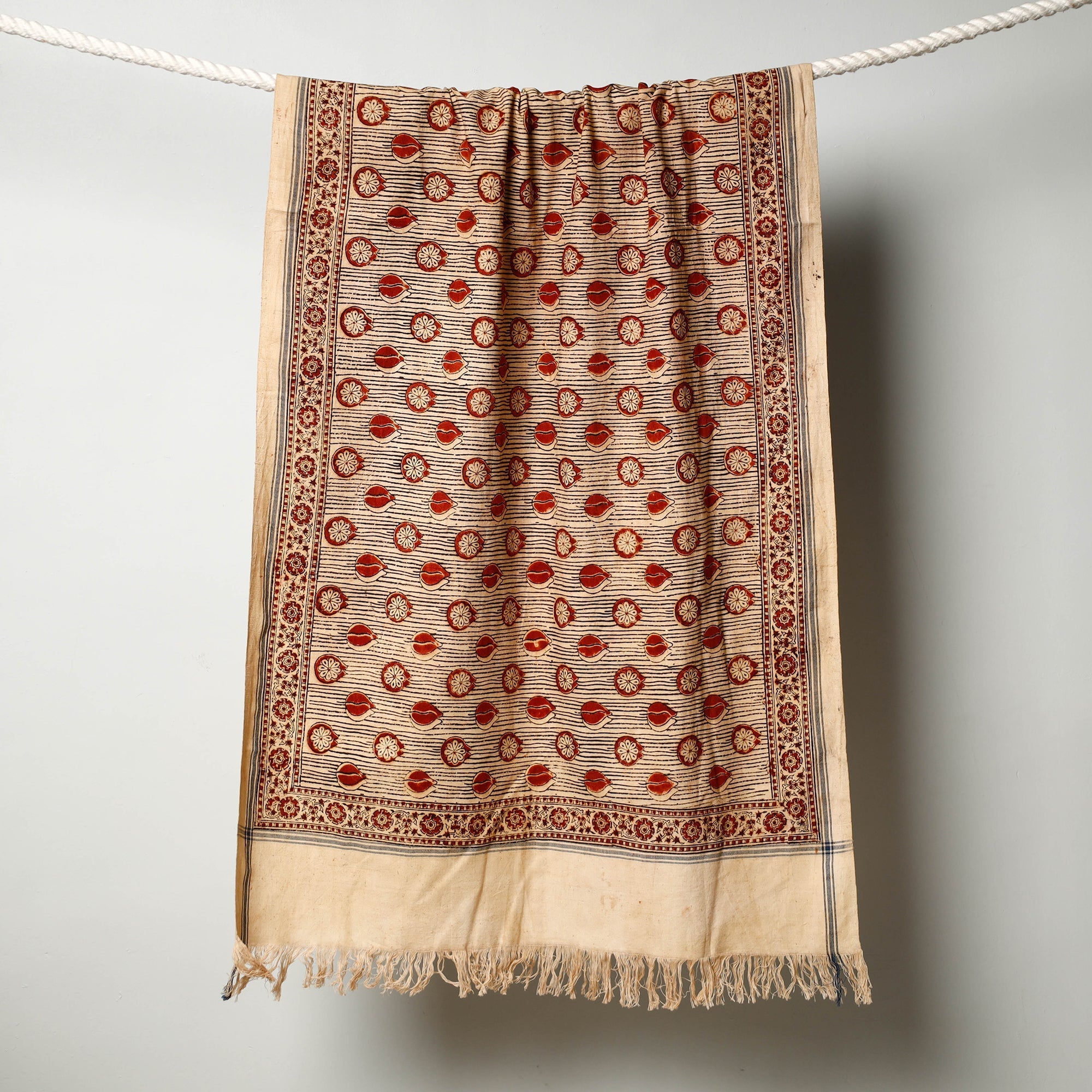 Fine quality original pedana kalamkari hand block printed natural dyed handloom pure cotton towel crafted by the skillful artisans of Pedana. Showcasing an assortment of hand block printed motifs inspired by traditional kalamkari painting. Kalamkari is the earliest and more complex techniques of block-printing.