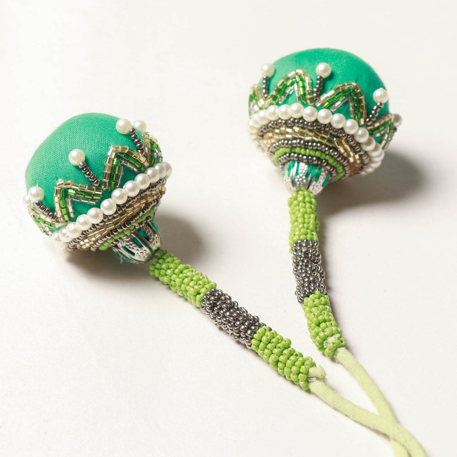 Material Pair of handmade cotton thread and bead work latkan/tassels for clothing.