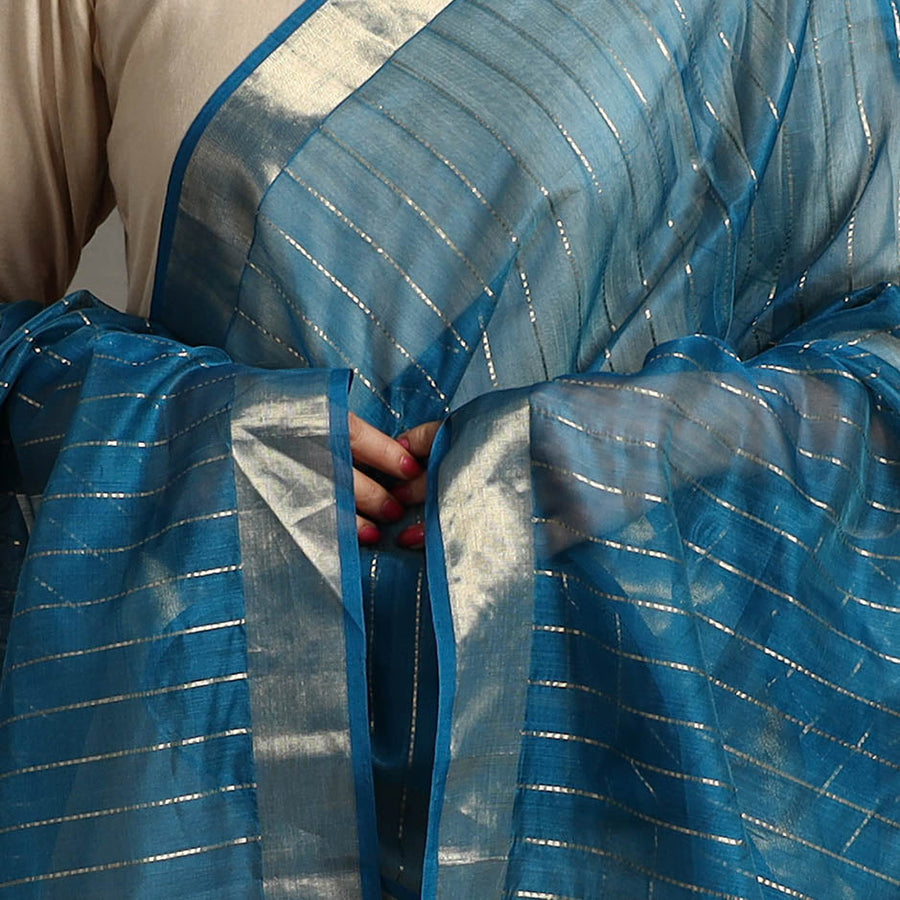 Handloom Zari Stripes Chanderi Silk Fabric 01