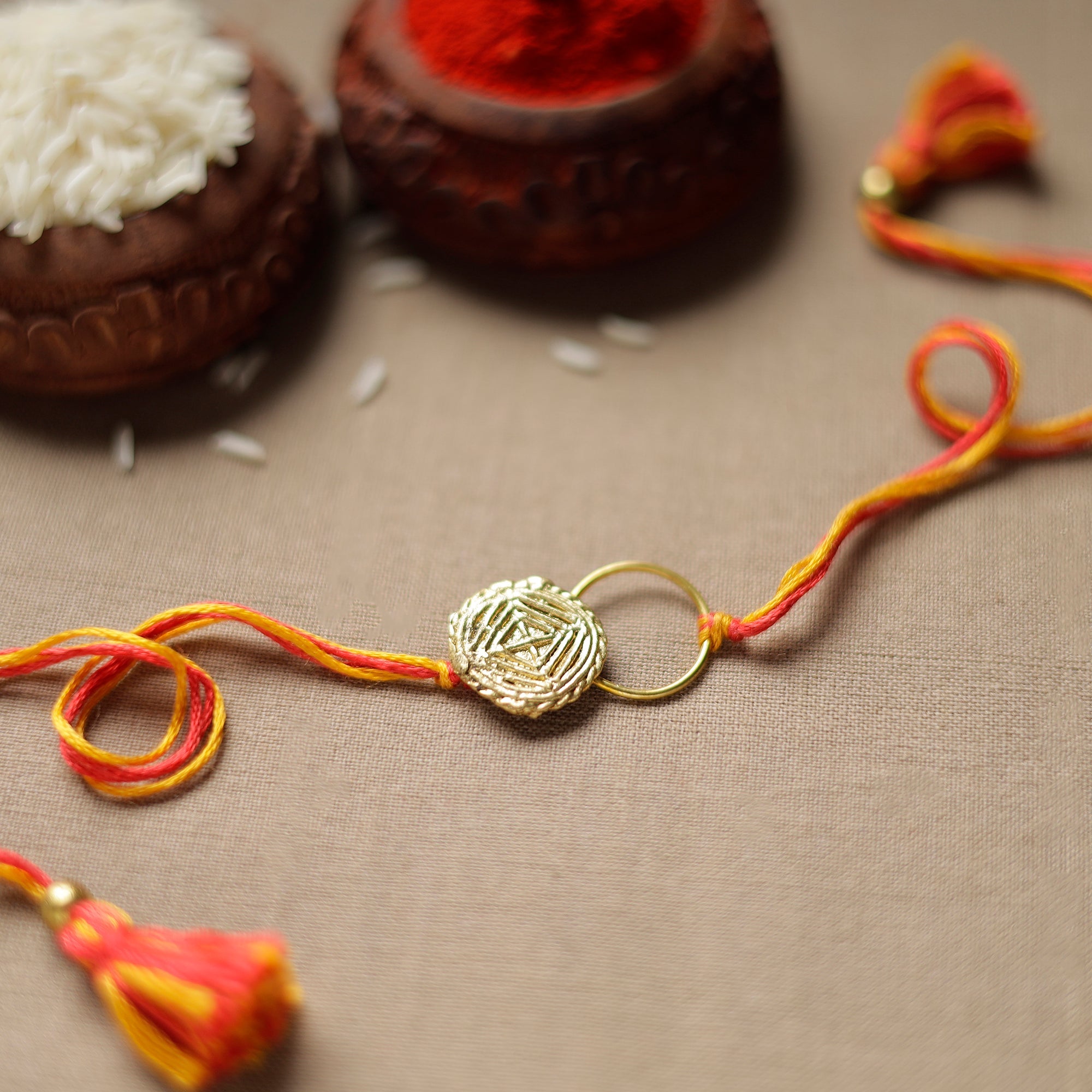 Handmade tribal dokra craft reusable rakhi by Miharu. This rakhi can later become a dainty choker. Alternately using bracelet this rakhi also allows you to wear them later on as an accessory. To help reduce waste, recycle and reuse rakhi, the new designs created by our tribal women can be converted into Jewelry. Dokra or Dhokra is an ancient craft practiced by nomadic tribes who have since settles into parts of eastern India. The Dhokra system is one of the oldest form of metal casting and is technically known as 'cire perdue' or lost wax process. These products being made of brass are 100% ecologically friendly handicraft products and inconsistencies are an integral part of it. By Purchasing Rakhi from iTokri you have proudly associated yourself with our artisan support initiative which brings happiness to more than 10000 families across India. Thanks so much!