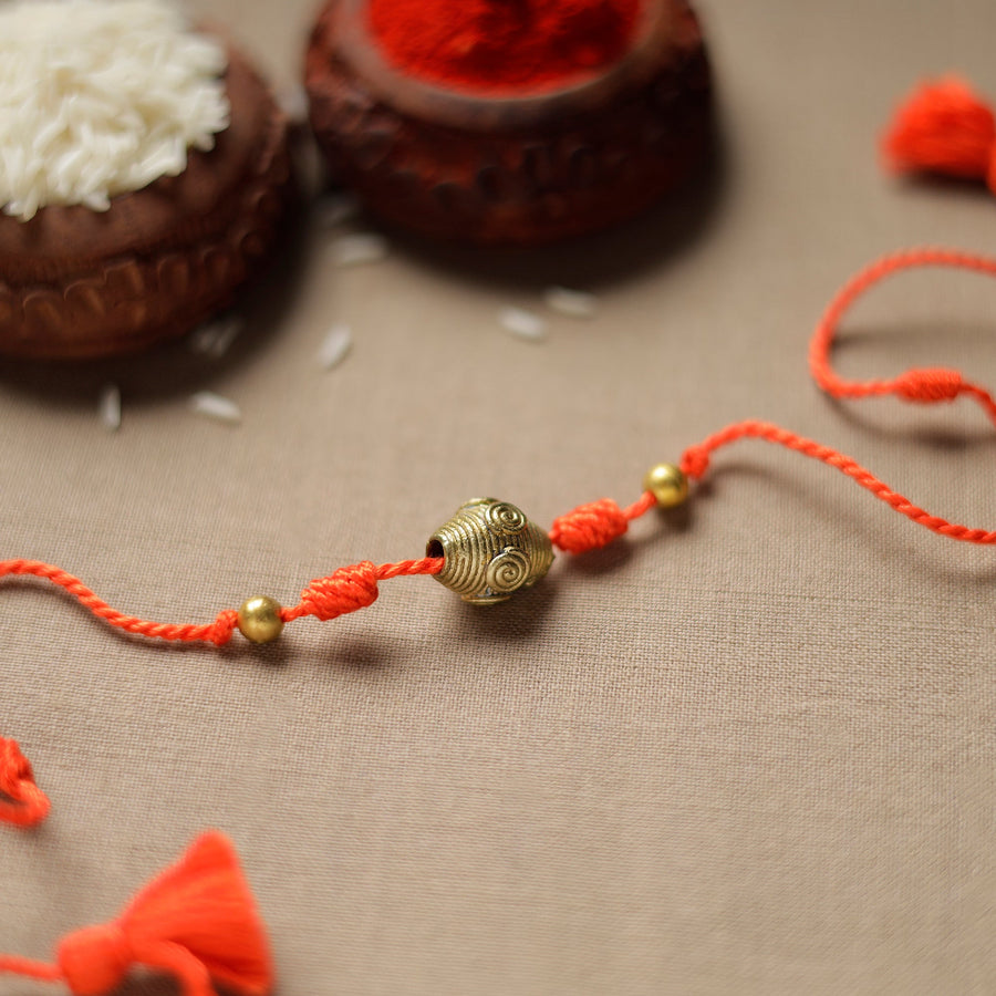 Handmade tribal dokra craft reusable rakhi by Miharu. This rakhi can later become a dainty choker. Alternately using bracelet this rakhi also allows you to wear them later on as an accessory. To help reduce waste, recycle and reuse rakhi, the new designs created by our tribal women can be converted into Jewelry. Dokra or Dhokra is an ancient craft practiced by nomadic tribes who have since settles into parts of eastern India. The Dhokra system is one of the oldest form of metal casting and is technically known as 'cire perdue' or lost wax process. These products being made of brass are 100% ecologically friendly handicraft products and inconsistencies are an integral part of it. By Purchasing Rakhi from iTokri you have proudly associated yourself with our artisan support initiative which brings happiness to more than 10000 families across India. Thanks so much!