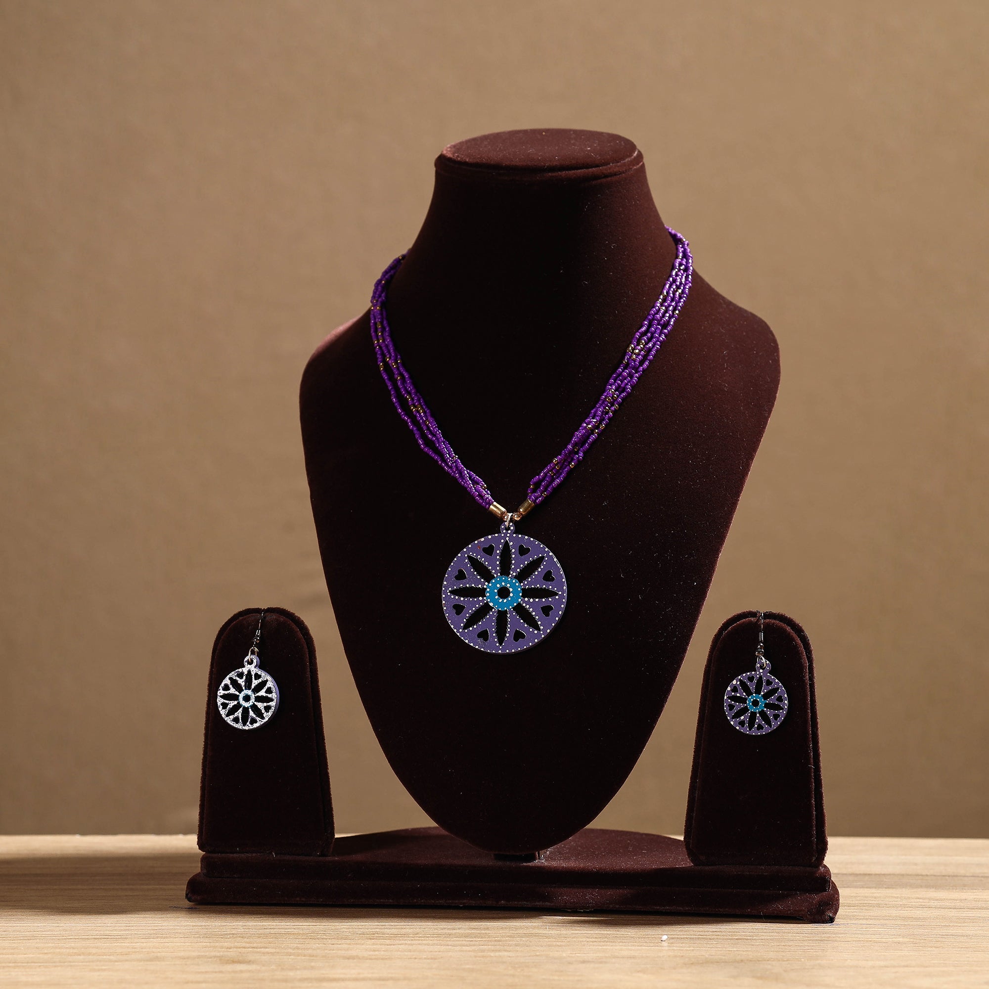 Beautifully purple handcrafted wooden necklace set made of mdf wood with tikuli handpainted miniature painting. (oil colours used) Can match any type of outfit.