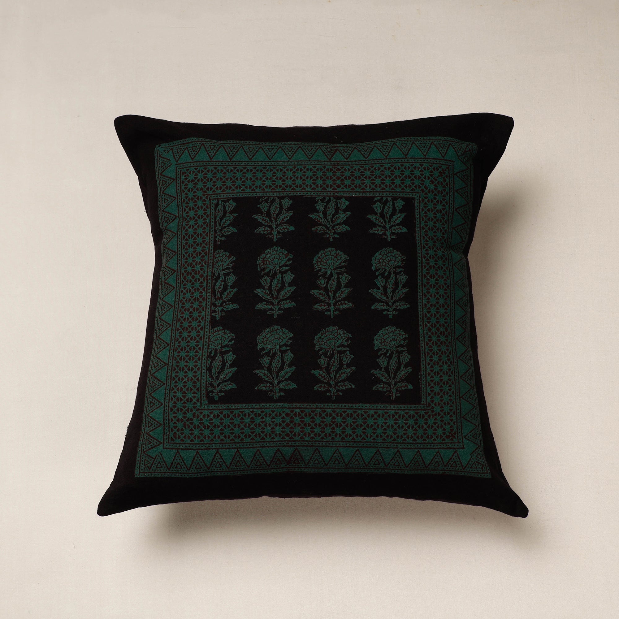 Fine quality bagh block printing cotton cushion cover, made using natural dyes through traditional processes by master artisan practiced in Bagh, the Dhar district of Madhya Pradesh.