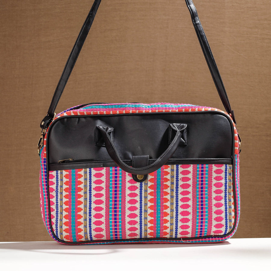 Handcrafted laptop bag with detachable & adjustable sling, made from woven cotton fabric & rexine from marudhara, Barmer. It has one zipper pocket outside & one velcro pocket inside. Ample space to keep most of your essentials.