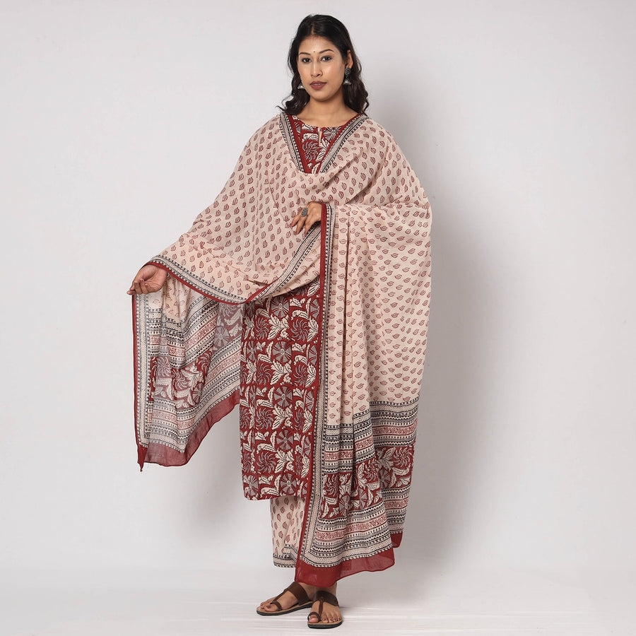 Look and feel beautiful in this uniquely designed bagh block printing cotton side pocket long Kurta with palazzo & dupatta set. This cotton suit makes you comfortable with ease all day long. This suit is perfect for your daily outing and for a special occasion. Bagh is a hand block printing technique from the Bagh, a small tribal town in Dhar district of Madhya Pradesh. ‘Bagh prints’ are trendy, cool and comfortable cloth material.