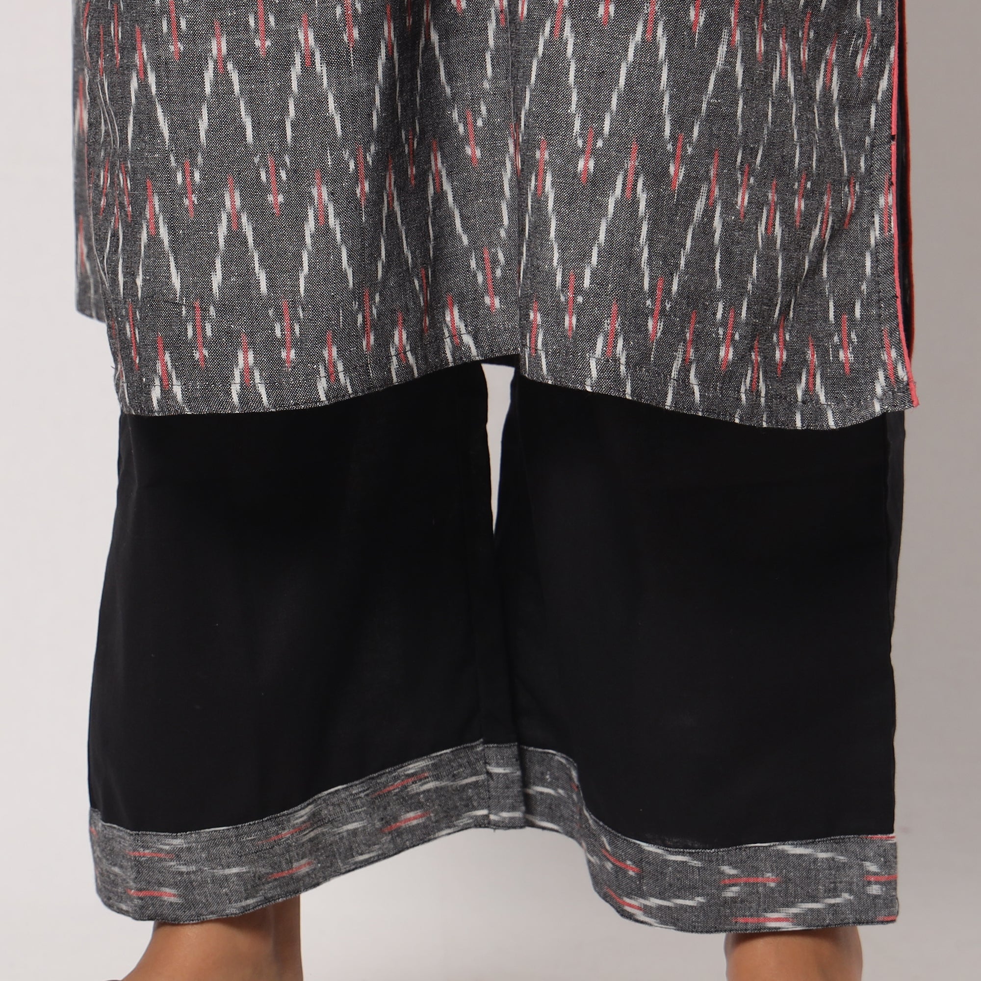 Look and feel beautiful in this uniquely designed pochampally ikat cotton side pocket long kurta with palazzo & dupatta set. This cotton suit makes you comfortable with ease all day long. This suit is perfect for your daily outing and for a special occasion. Ikat has lovely patterns in extremely beautiful colours. Ikat fabrics are world famous for their colours, texture and designs. This is a power-loom dress material, only hand tie-dye process has been involved.