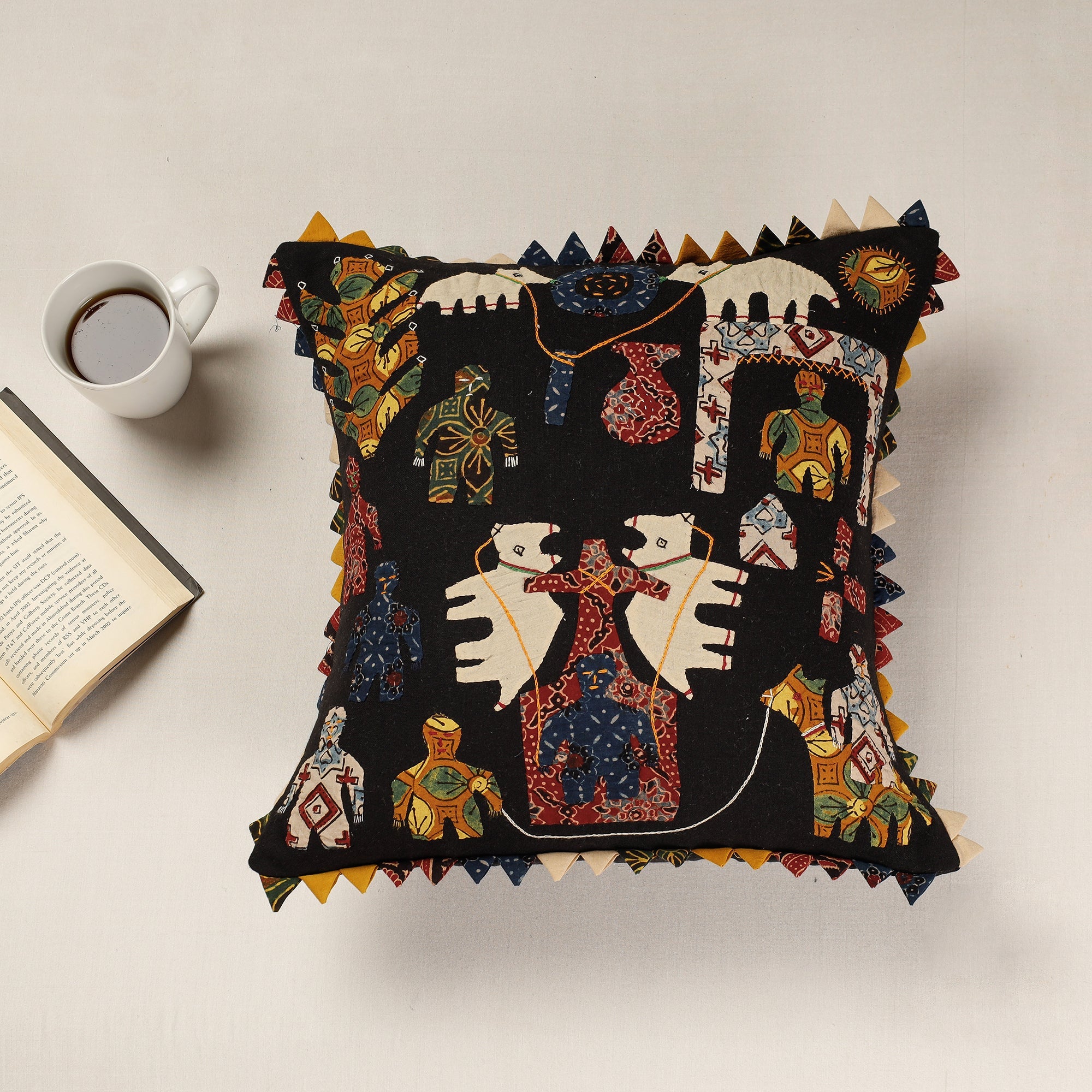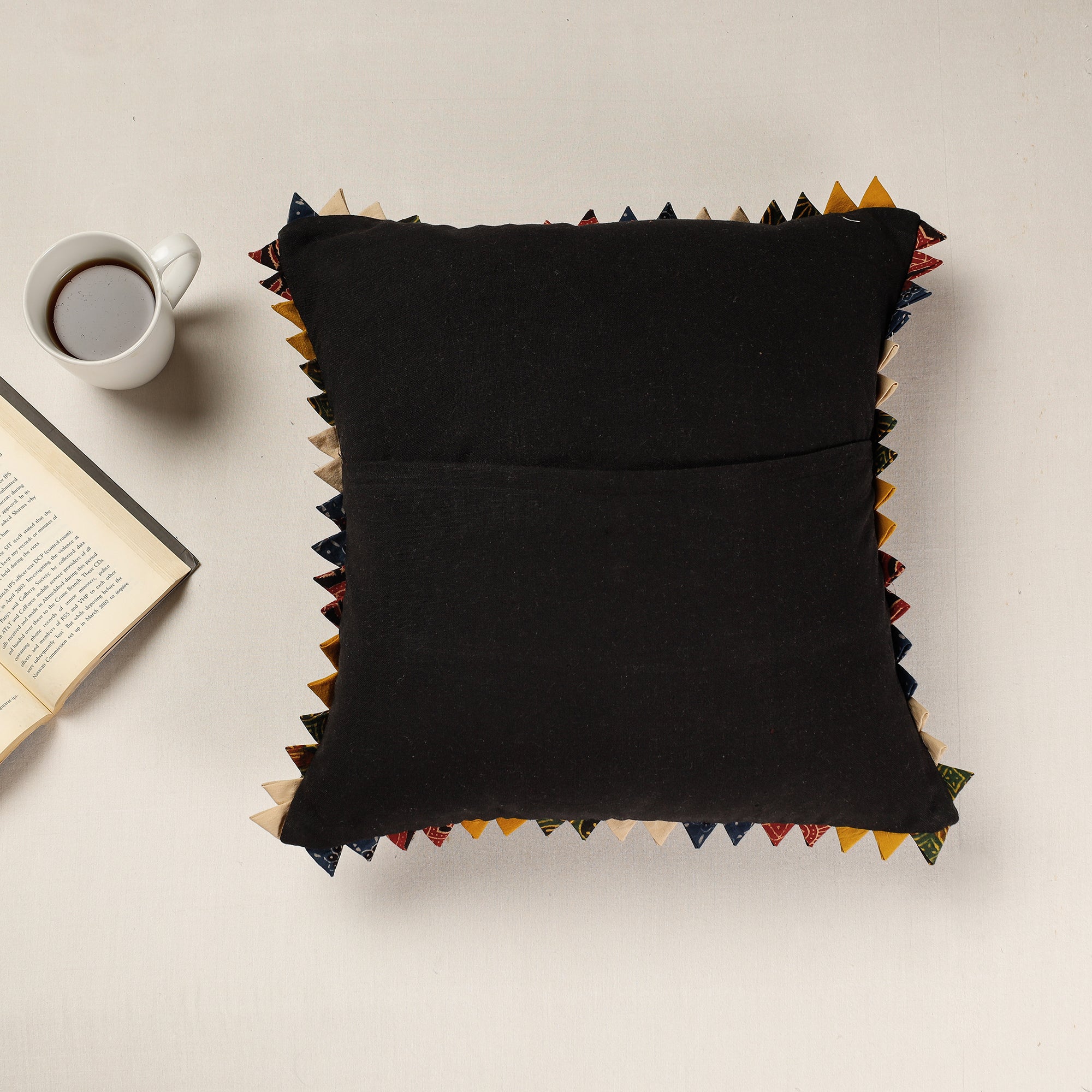 Fine quality applique cutwork cotton cushion cover. This cushion cover is made from cotton fabric with applique cut work by artisans of Kala Raksha.