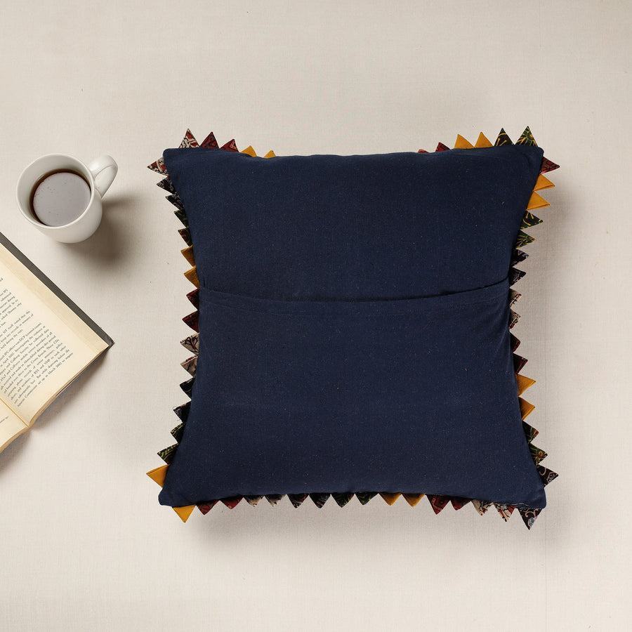 Fine quality applique cutwork cotton cushion cover. This cushion cover is made from cotton fabric with applique cut work by artisans of Kala Raksha.