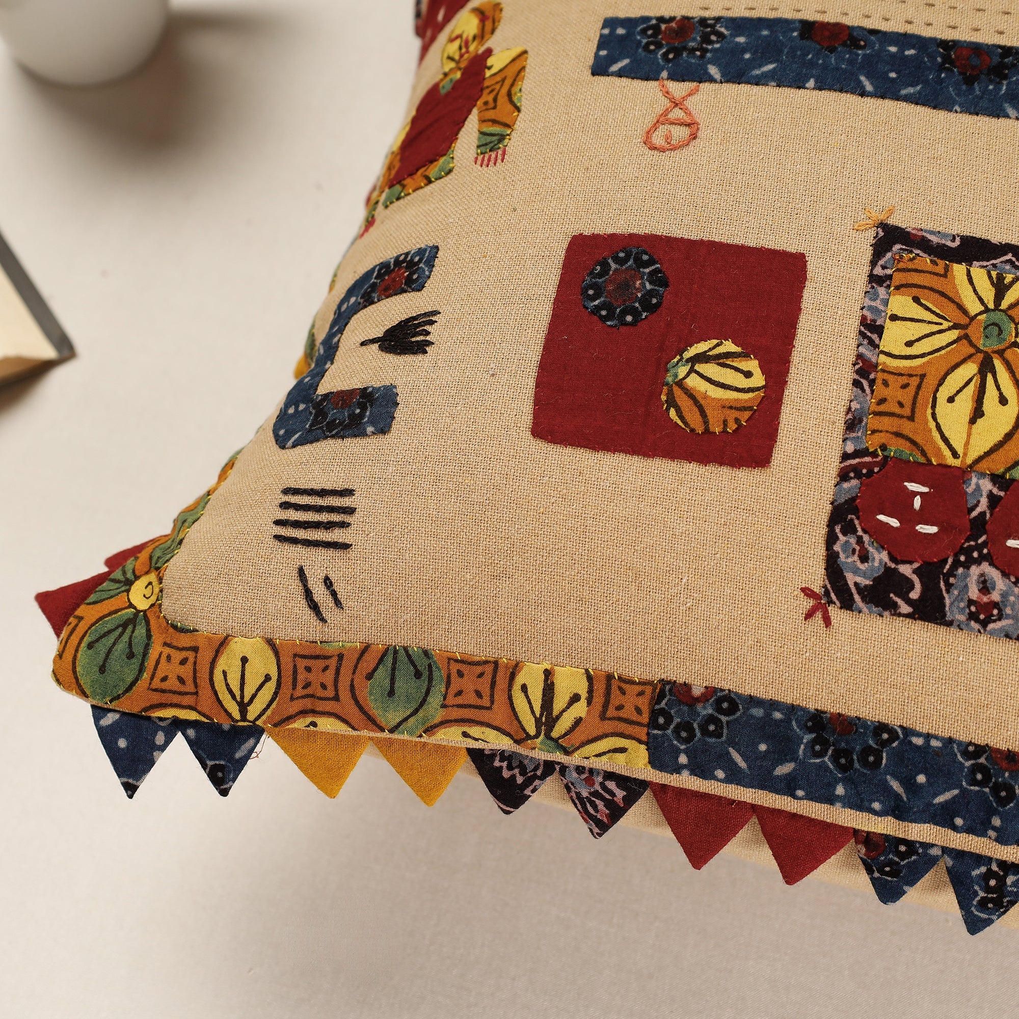 Fine quality applique cutwork cotton cushion cover. This cushion cover is made from cotton fabric with applique cut work by artisans of Kala Raksha.