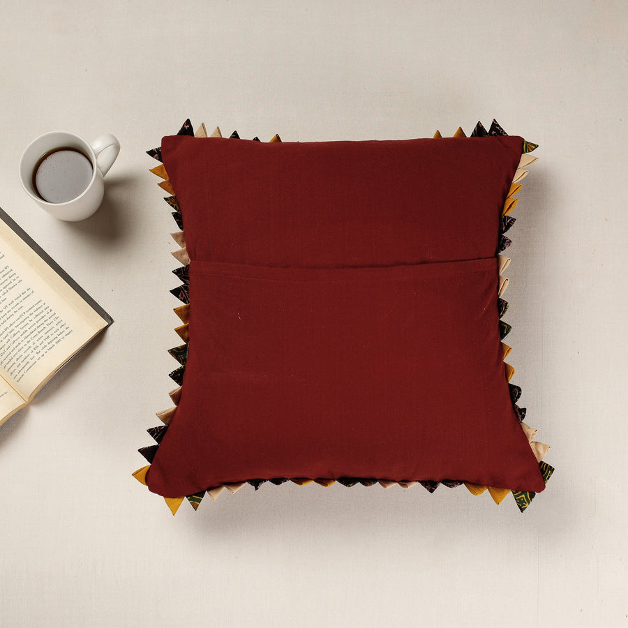 Fine quality applique cutwork cotton cushion cover. This cushion cover is made from cotton fabric with applique cut work by artisans of Kala Raksha.