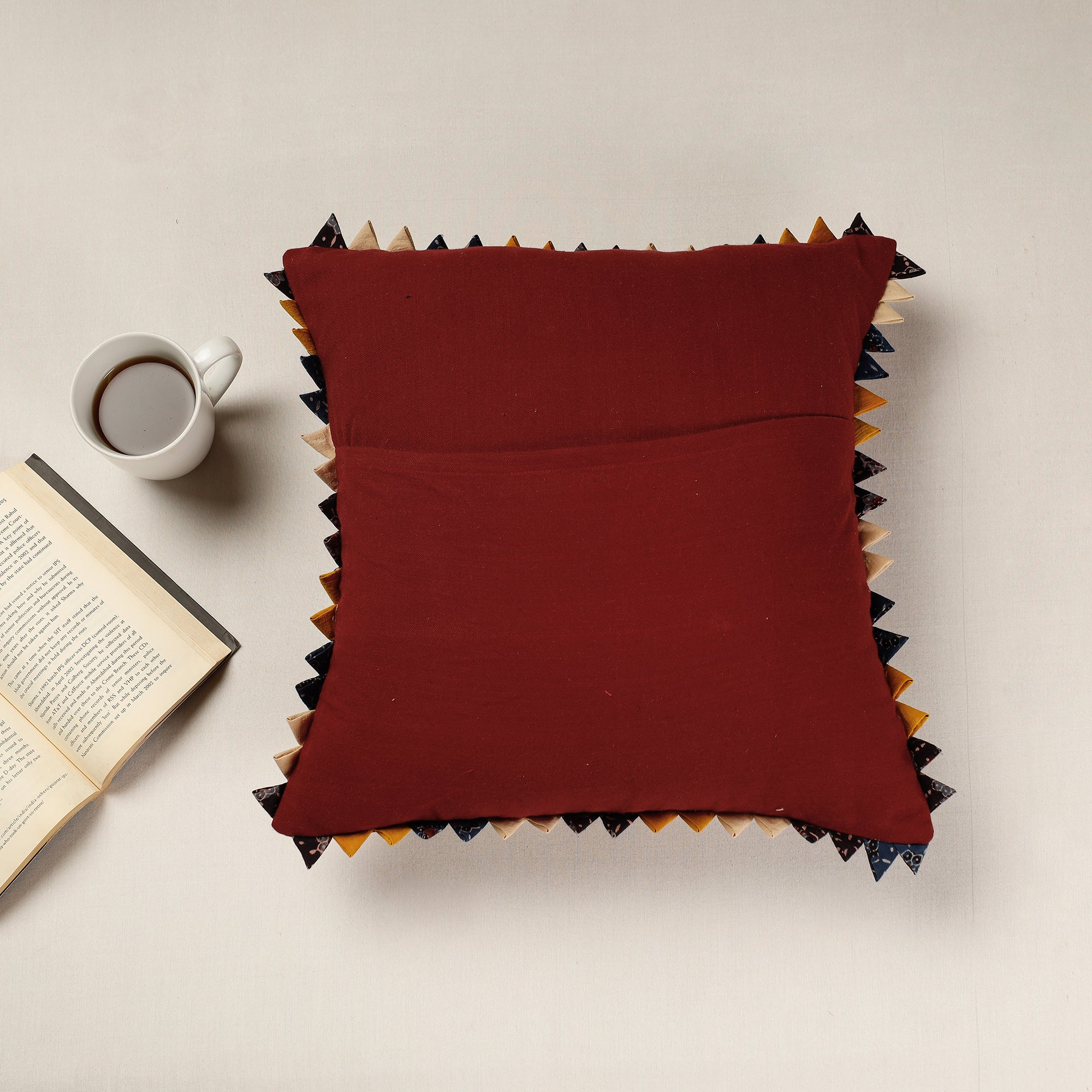 Fine quality applique cutwork cotton cushion cover. This cushion cover is made from cotton fabric with applique cut work by artisans of Kala Raksha.