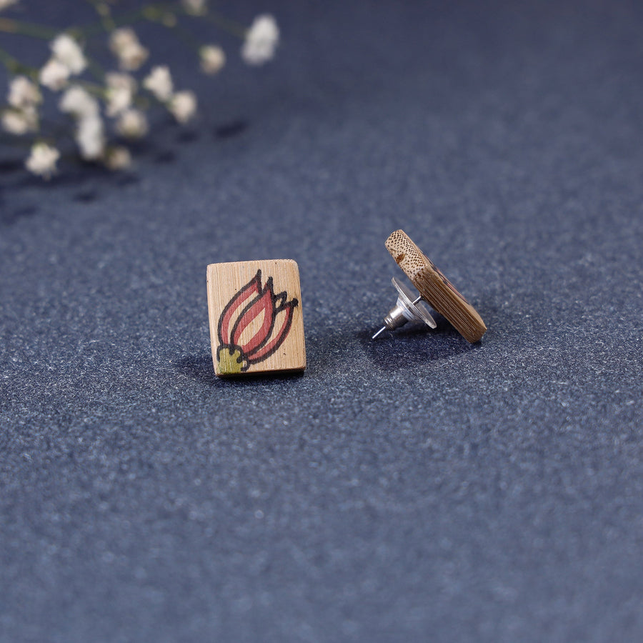 Red kerala handpainted stud earrings, made using natural bamboo and handpaitned with acrylic colours.