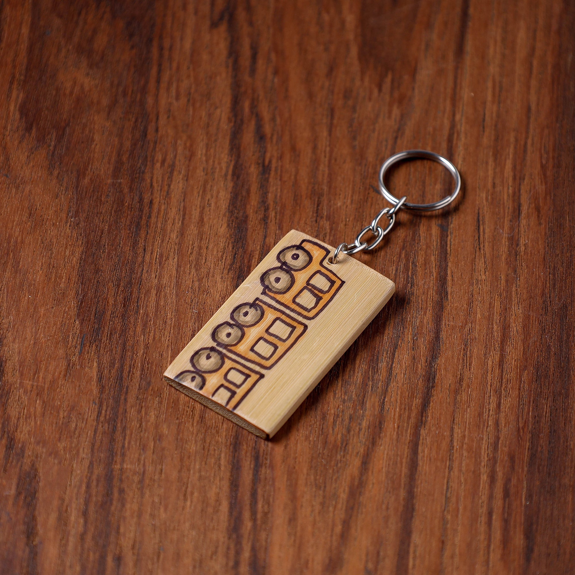 Kerala handpainted keychain, made using natural bamboo and metal handpaitned with acrylic colours. Bamboo has a beautiful natural finish and is a sustainable material. A stylish option for keeping your keys organised.