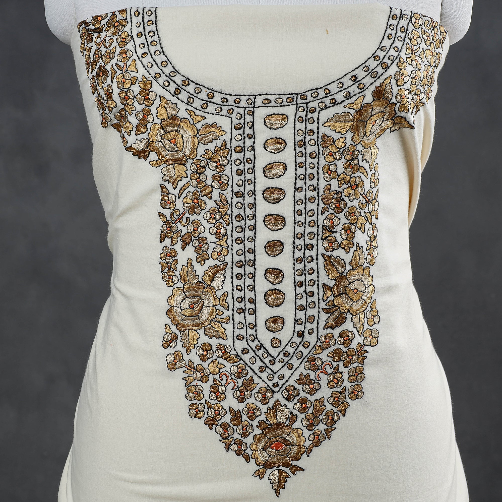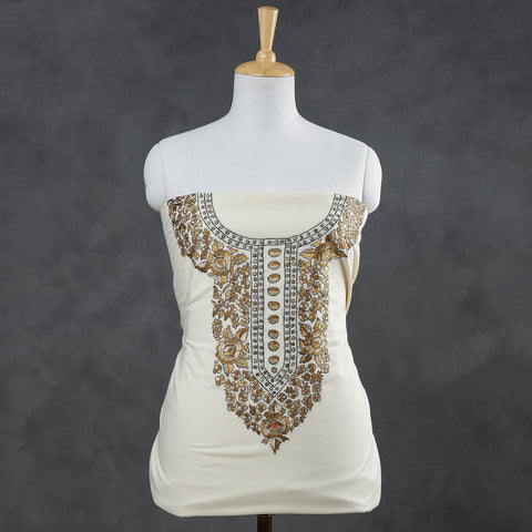 Kashmiri kashidakari thread work embroidery cotton kurta material by Zahoor Ahmed from Harwan, Kashmir. Kashida Embroidery is one of the most ancient and traditional types of craft. It is also known as ‘Kasida’. The embroidery is done with multi-colored threads. This delicate and traditional form of art is done by the young men of Kashmir. From early time to today Kashmiri Embroidery (Kashida) has its own recognition all over the country and also around the world. It reflects the historic traditional art of the Kashmir.